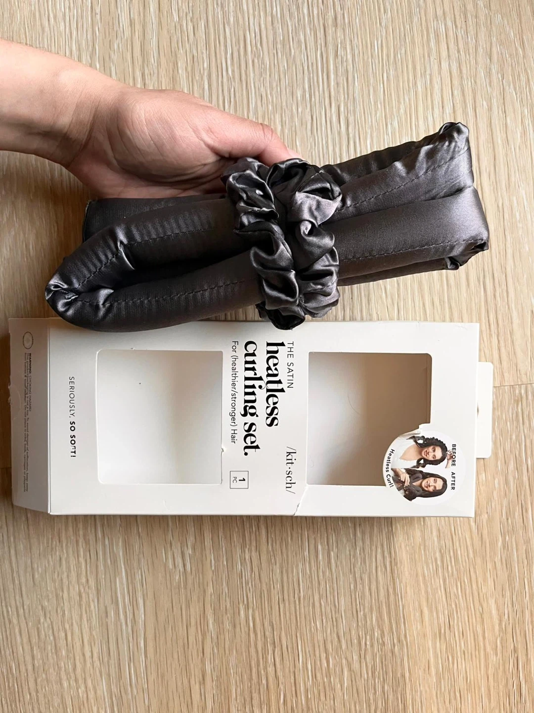 Get heatless and soft curls overnight with this satin curling set. Includes a curling rod and two scrunchies. Ideal for medium-length to long hair. Used only once and can attest it works!