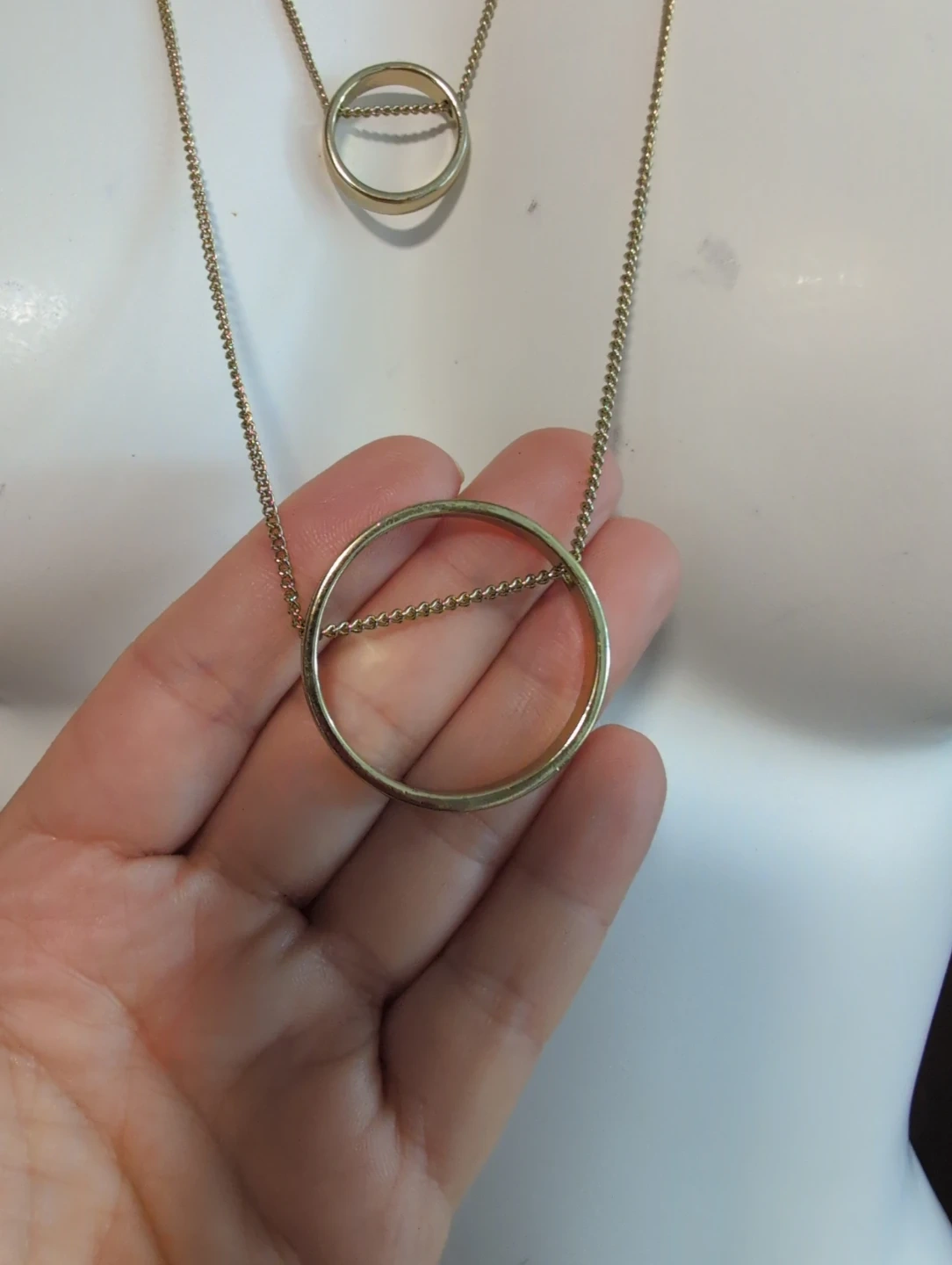 Buy & SellLayered Circle Pendant NecklaceLayered Circle Pendant Necklace$10A layered necklace with two gold-tone circle pendants. The chains are delicate and have lobster clasp closures. It's a simple yet stylish accessory.ConditionGoodWHERE TO MEETCheck LocationView MapSELLERverifiedNathalieClarence-Rockland650 reviews0 chats·0 favorites·6 viewsSEND CHAT TO SELLERHi Nathalie! I’m interested in your listing.Hi Nathalie! I’m interested in your listing.Get the Karrot app to chatSign In to chat