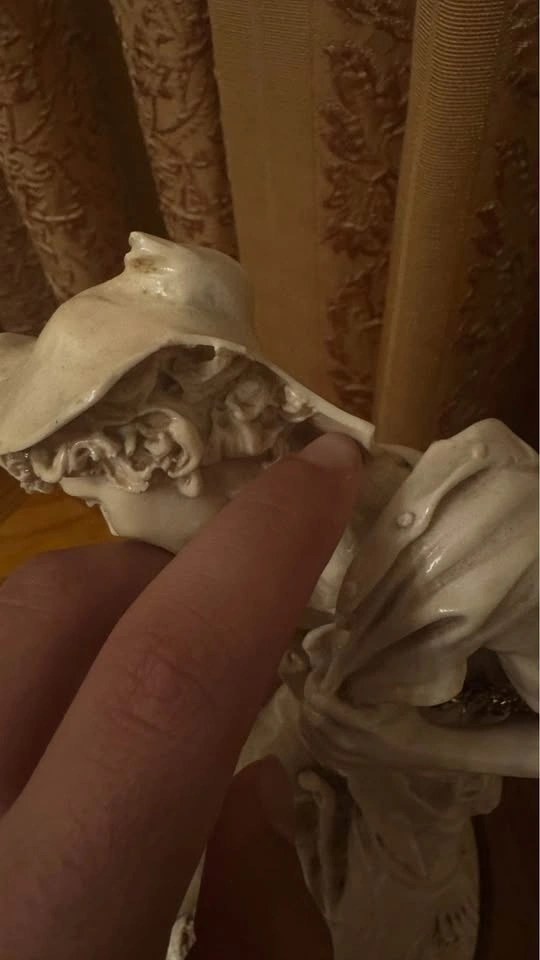 G. Armani collectible shepherd statue with detailed design. Has a large broken piece on the head, sold as-is. 29cm tall.