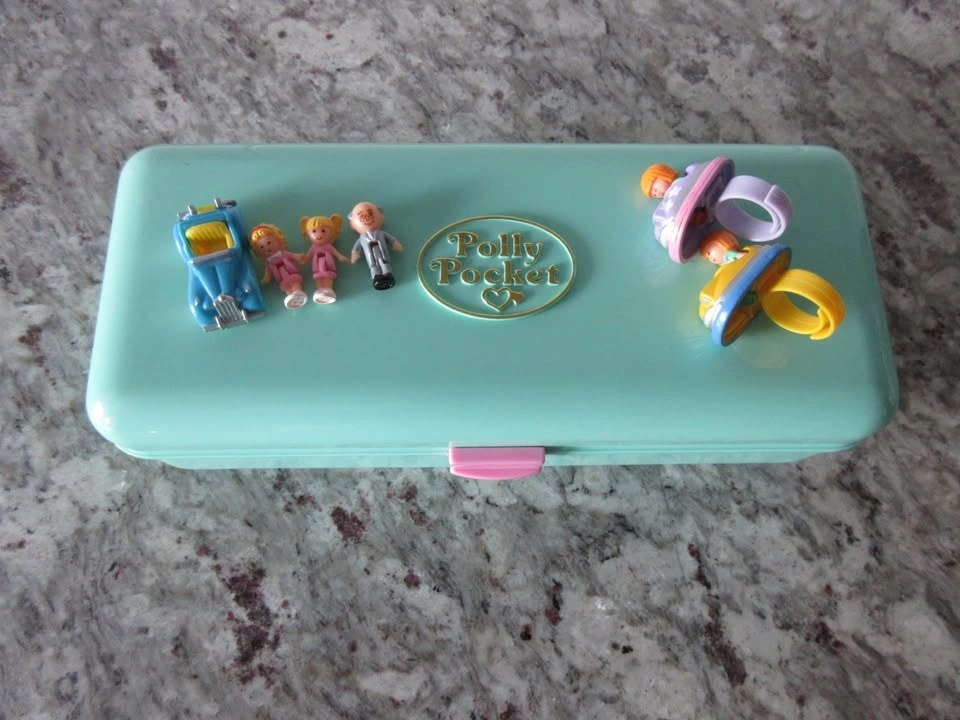 1989 Polly Pocket High Street Money Box & x2 Rings