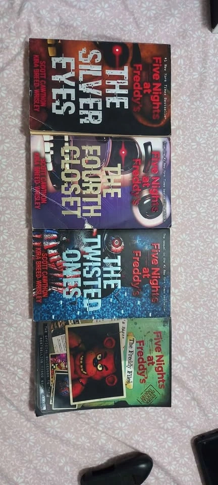 This is a complete trilogy book series of FNAF Five Nights At Freddy's: 3 main books and 1 special guidebook.