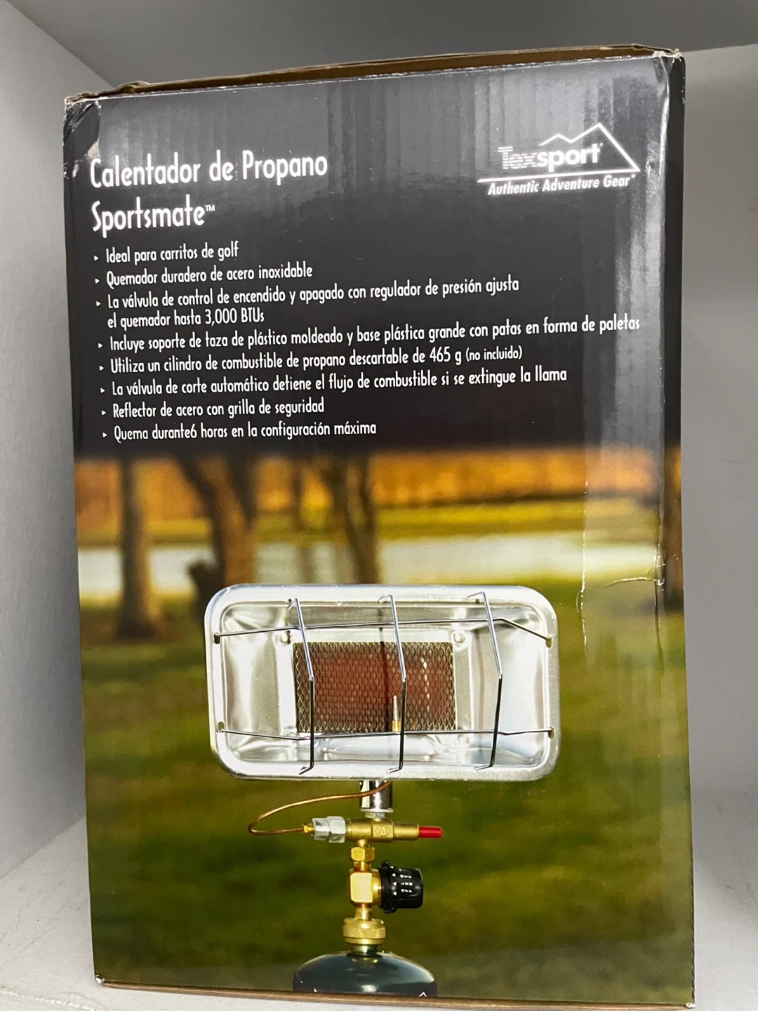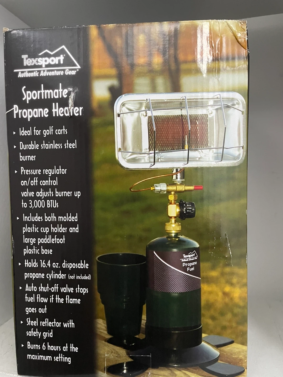 This propane heater is ideal for golf carts. It has a durable stainless steel burner and adjustable pressure regulator. Includes a plastic cup holder and plastic base. Burns 6 hours at maximum setting.
