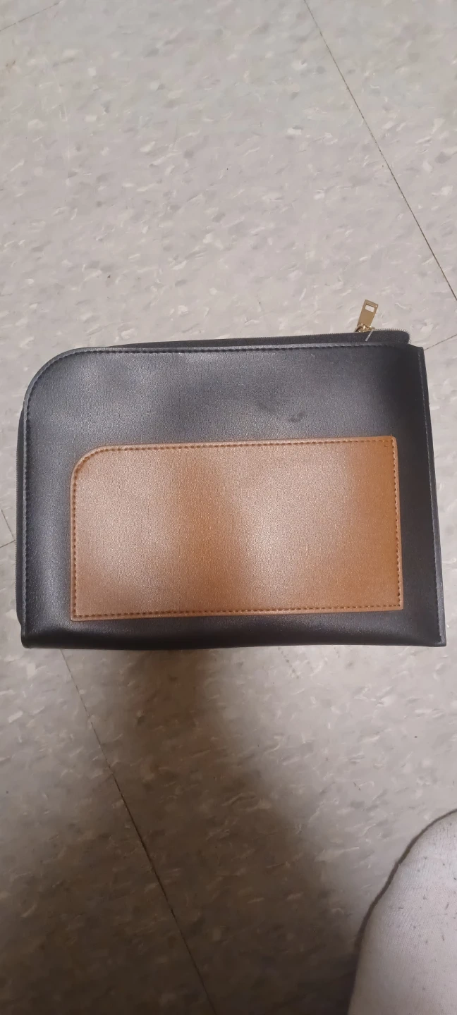 Here is a black pouch from LANVIN Paris. It has a zipper closure and a brown accent on the back. Inside, there's a tag that says "LANVIN PARFUMS" and "Exclusively made for TURKISH AIRLINES".