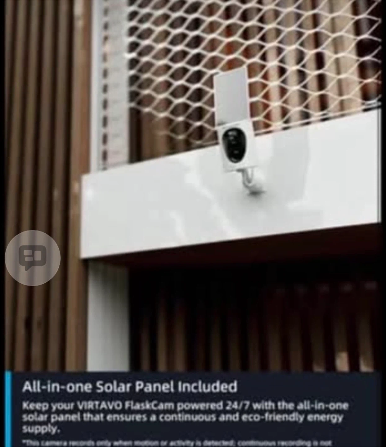 virtavo SolarFlask 2K Solar Security Cameras Wireless Outdoor, Starlight Lens, Color Night Vision, PIR Motion Detection, Battery-Powered, 2-Way Audio, Weatherproof, Cloud/SD Storage, 2.4GHz WiFi