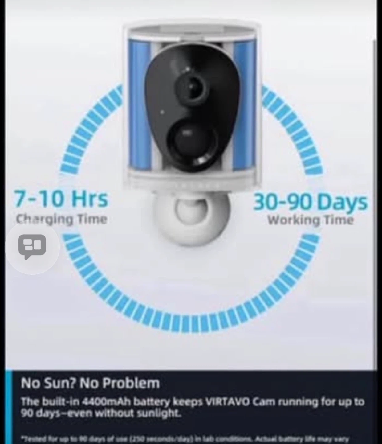 virtavo SolarFlask 2K Solar Security Cameras Wireless Outdoor, Starlight Lens, Color Night Vision, PIR Motion Detection, Battery-Powered, 2-Way Audio, Weatherproof, Cloud/SD Storage, 2.4GHz WiFi