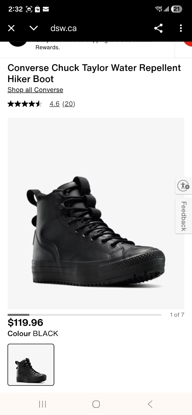 These black Converse Chuck Taylor high-top boots are water repellent and made for the outdoors. They're constructed with durable leather and textile. They feature a rugged outsole for good traction. These boots are ideal for wet or cooler weather conditions.