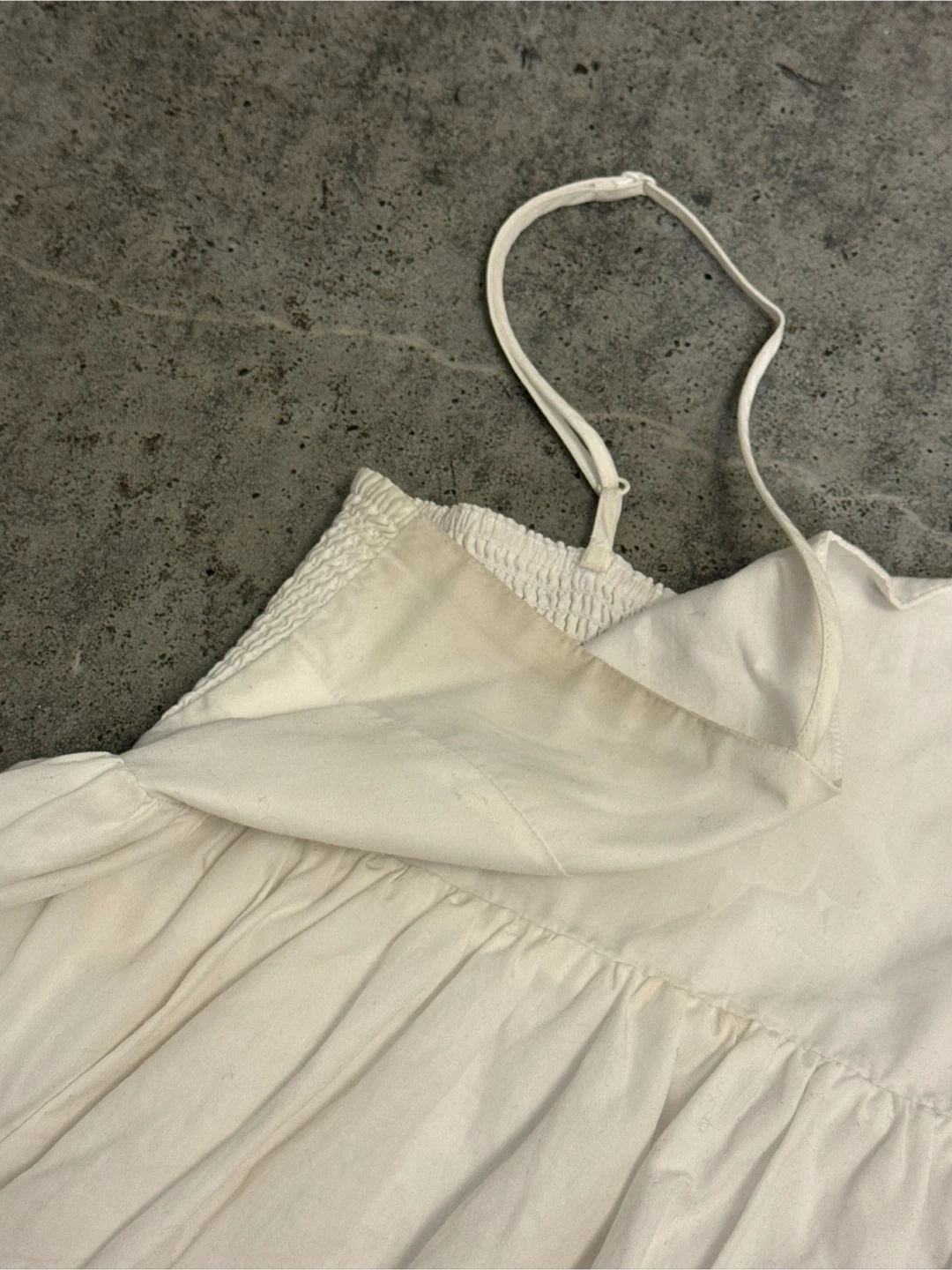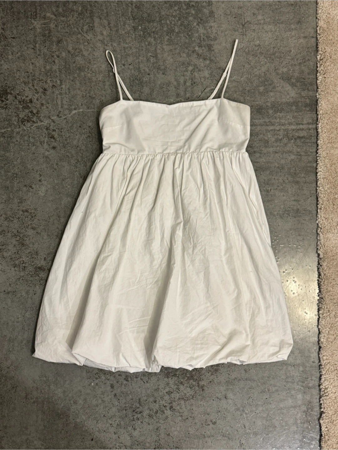 Selling a cute Aritzia Sunday Best Elio Poplin Dress in white. It has a simple and elegant design that’s perfect for summer! There are some signs of use, as pictured. It's a great addition to any wardrobe!