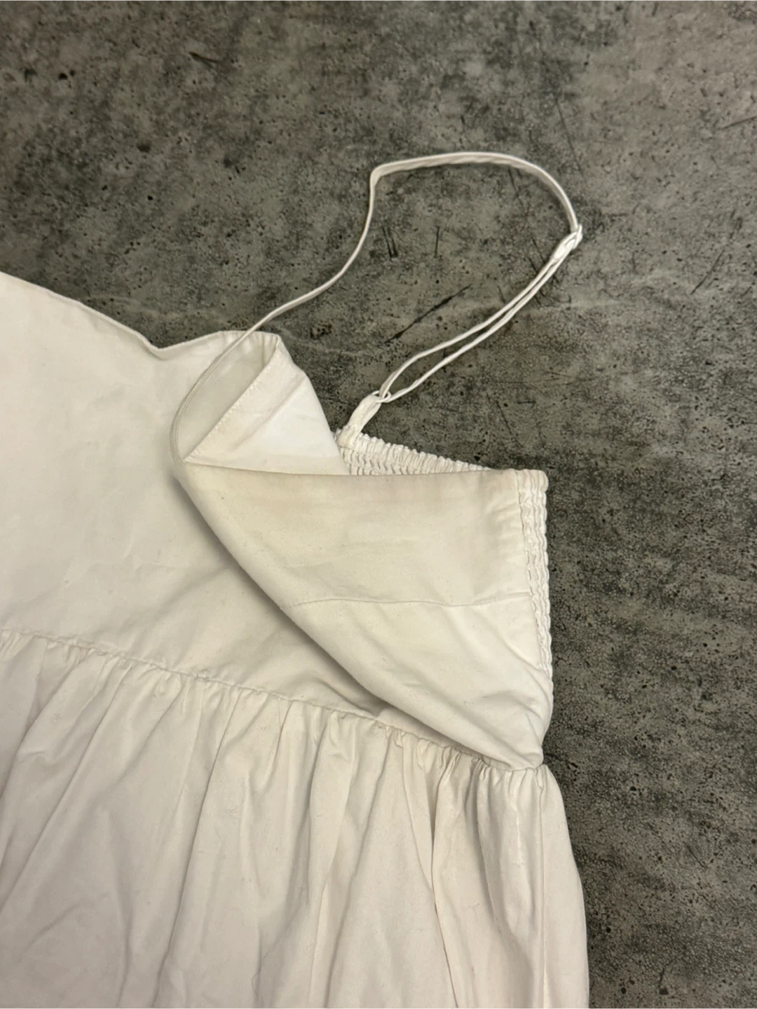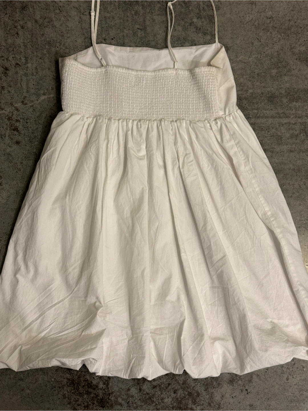 Selling a cute Aritzia Sunday Best Elio Poplin Dress in white. It has a simple and elegant design that’s perfect for summer! There are some signs of use, as pictured. It's a great addition to any wardrobe!