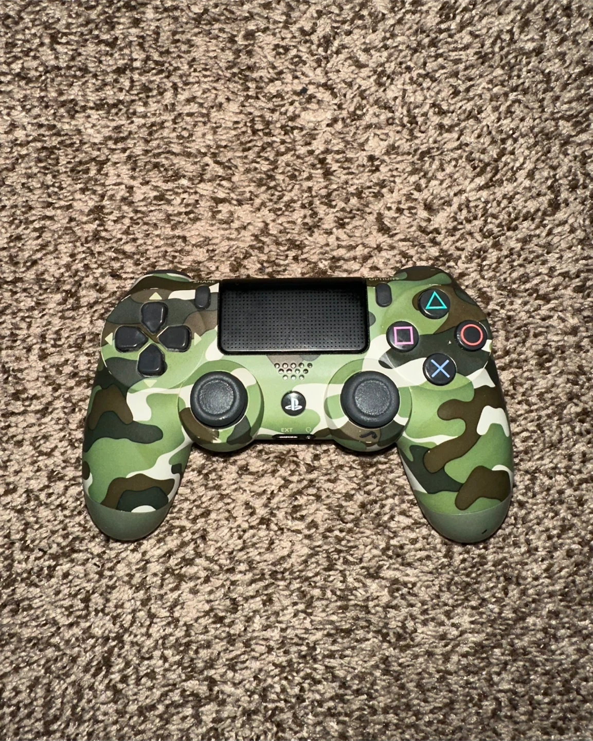 Selling a Green Camouflage PS4 DualShock controller, in excellent condition. Brand new, rarely used, and no stick drift. You are more then welcome to test it before buying.