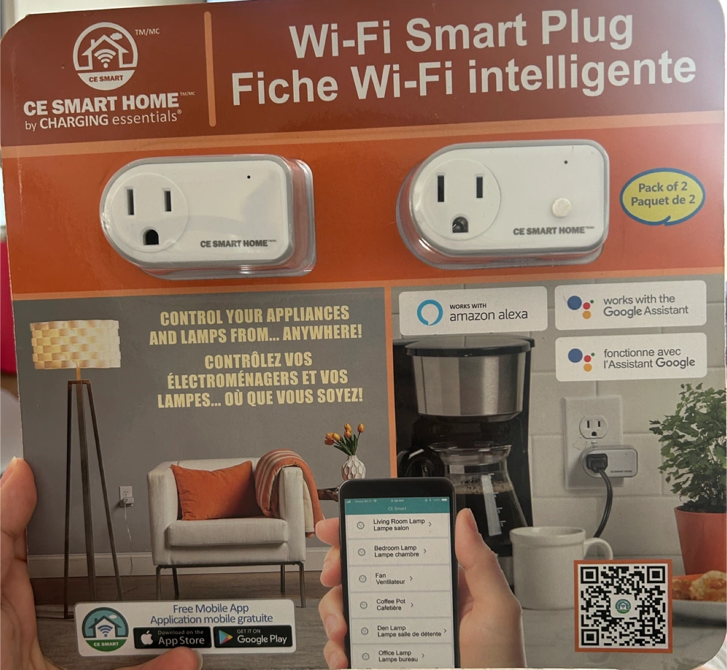 These CE Smart Home Wi-Fi smart plugs come in a pack of 2. They allow you to control appliances and lamps from anywhere using your smartphone. Set daily and weekly schedules for added convenience.