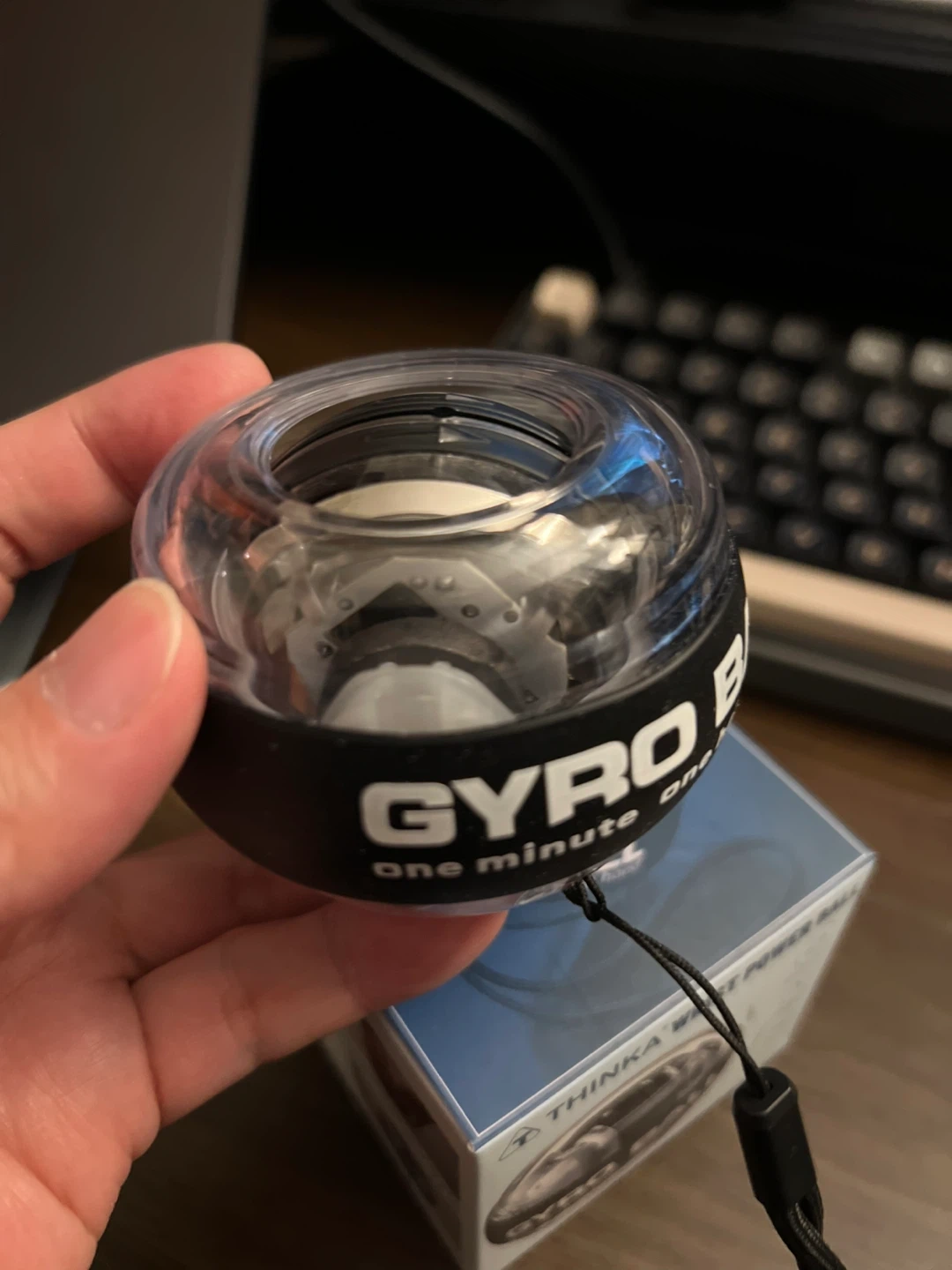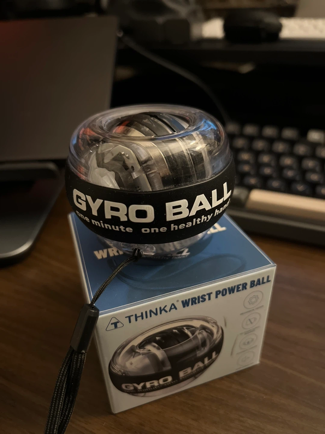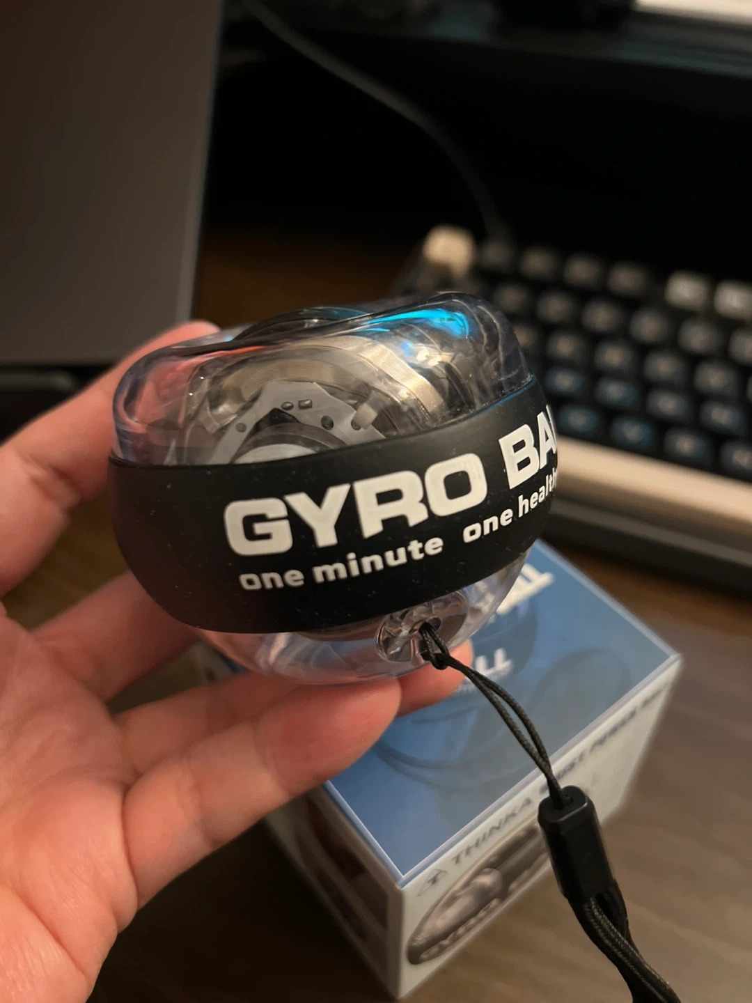 This is a THINKA Wrist Power Ball, also known as a Gyro Ball. It's designed for hand and wrist strengthening. The transparent casing shows the internal gyroscope mechanism. It's a great tool for building grip strength!
