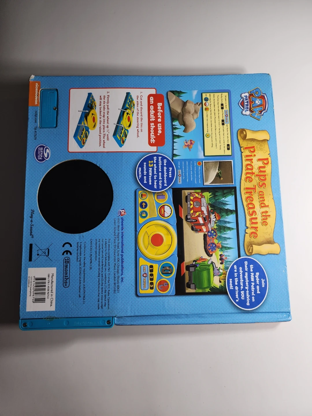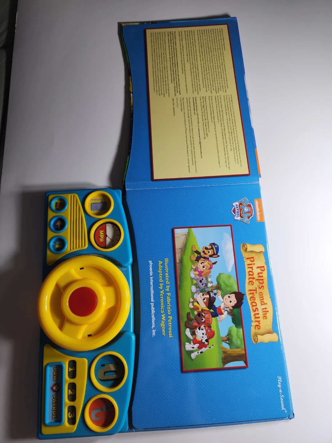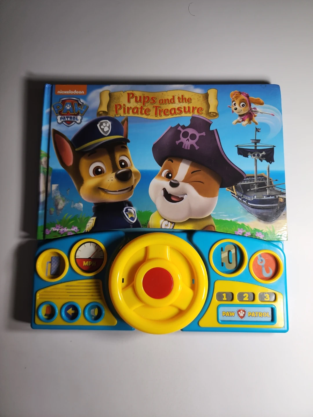 Interactive sound book with a steering wheel and dashboard buttons. Includes a story about the Paw Patrol pups and the pirate treasure. It's great for young fans of the show!