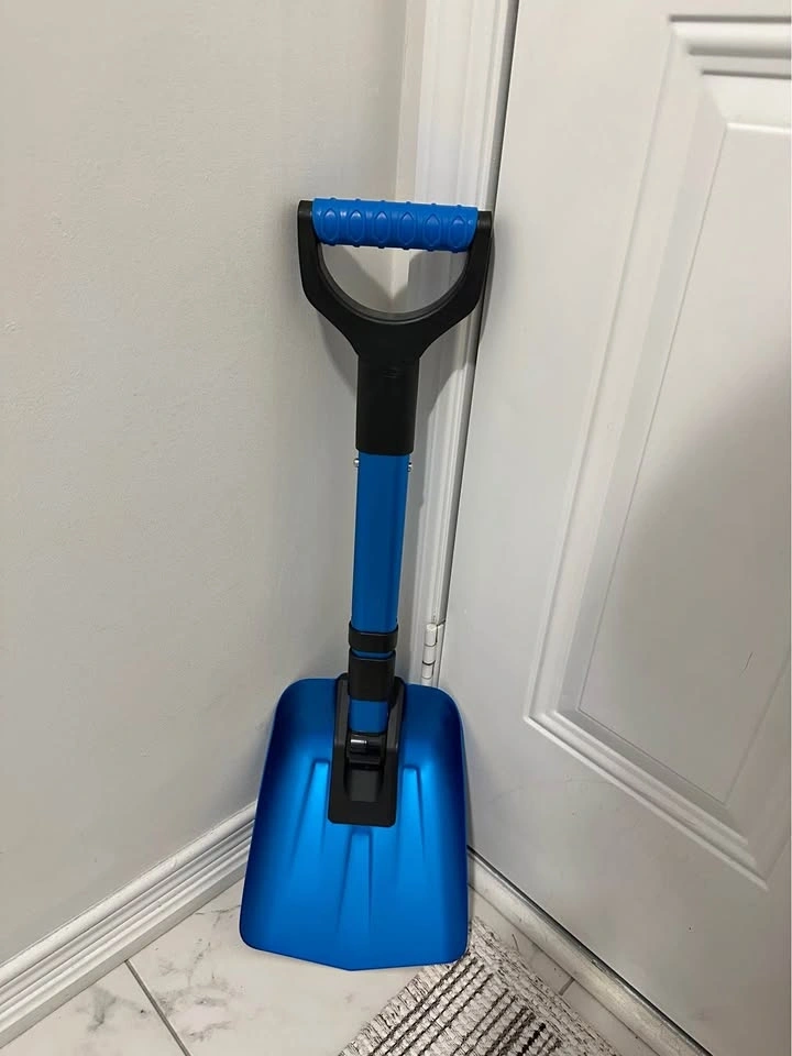 Essential for winter driving! This lightweight but heavy-duty aluminum shovel is designed to be stored in your trunk or hatch for snow emergencies. Features a 3-piece collapsible design. It can go from a compact storage size to a full-length shovel in seconds. High-quality aluminum construction (much stronger than plastic versions). Large D-handle for easy use even with heavy winter gloves. Like new, never used.