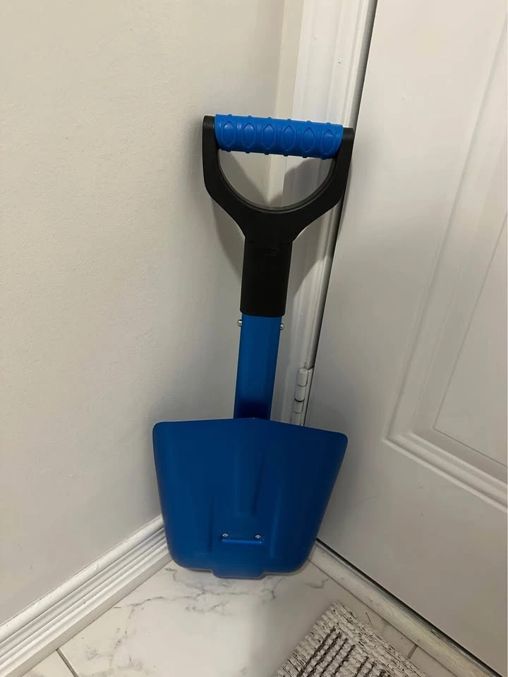 Essential for winter driving! This lightweight but heavy-duty aluminum shovel is designed to be stored in your trunk or hatch for snow emergencies. Features a 3-piece collapsible design. It can go from a compact storage size to a full-length shovel in seconds. High-quality aluminum construction (much stronger than plastic versions). Large D-handle for easy use even with heavy winter gloves. Like new, never used.