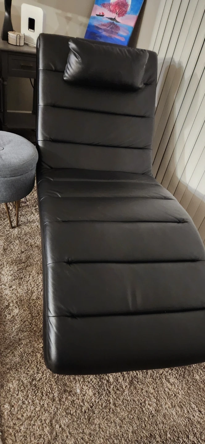 Black Faux Leather Chaise Lounge Chair with Pillow