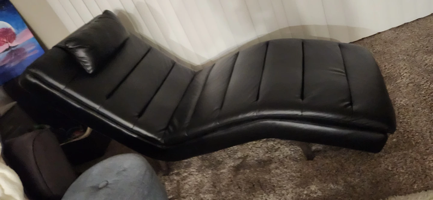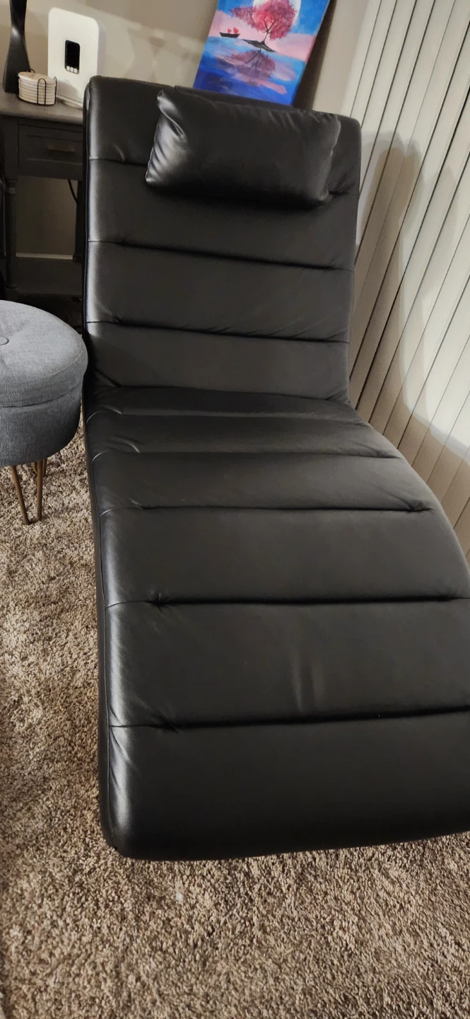 Black Faux Leather Chaise Lounge Chair with Pillow