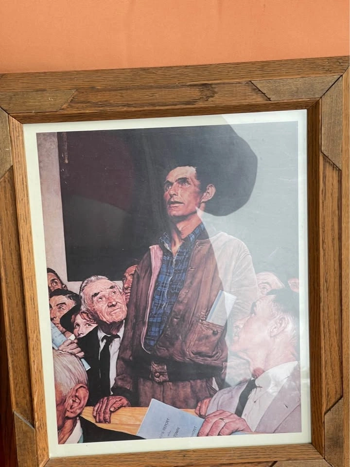 One framed Norman Rockwell prints, 'Freedom of Speech'. print is approximately 11 by 15 inches. From a smoke-free, pet-friendly home. Porch pickup available at Whites Rd and Bayly in Pickering.