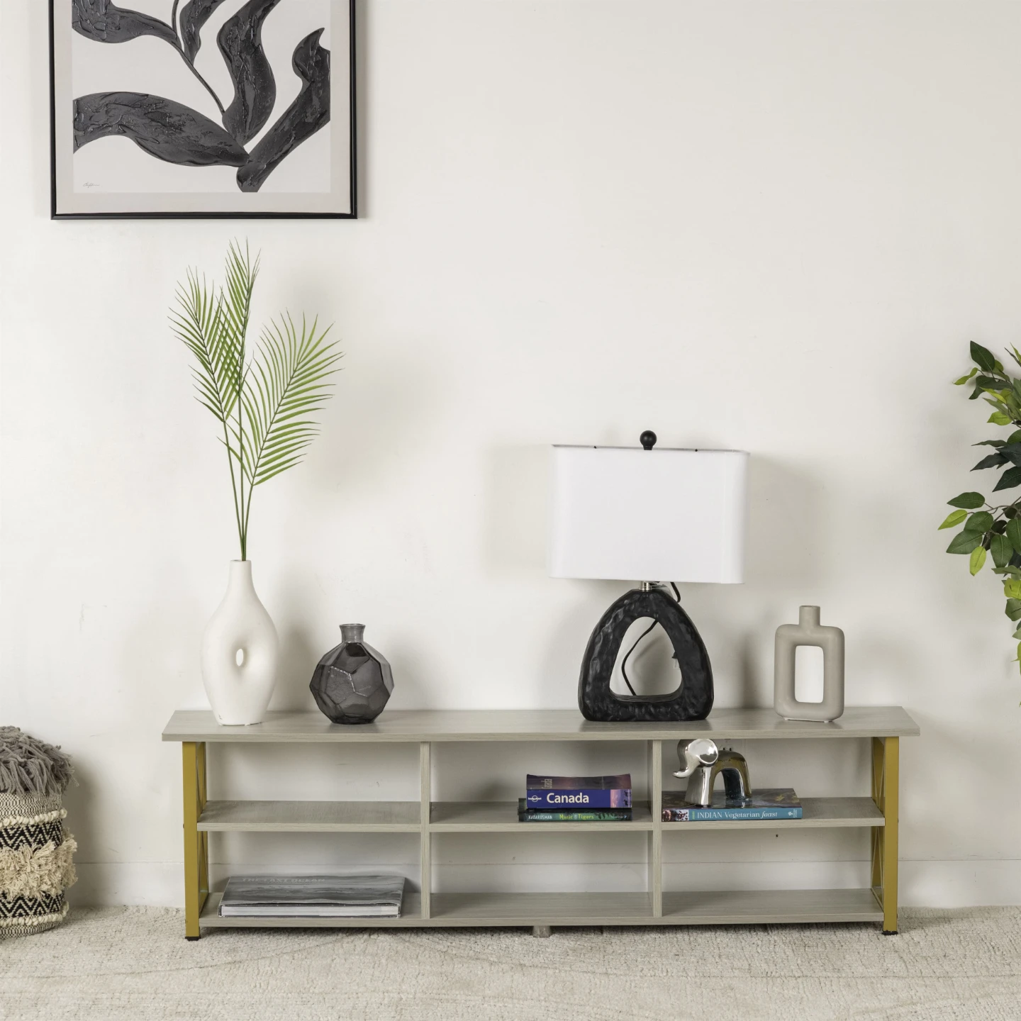 This TV stand media console table is perfect for your living room or entertainment space. It features a stylish grey wash finish and provides ample storage for your media devices and accessories. It's in great condition and ready to enhance your home decor!