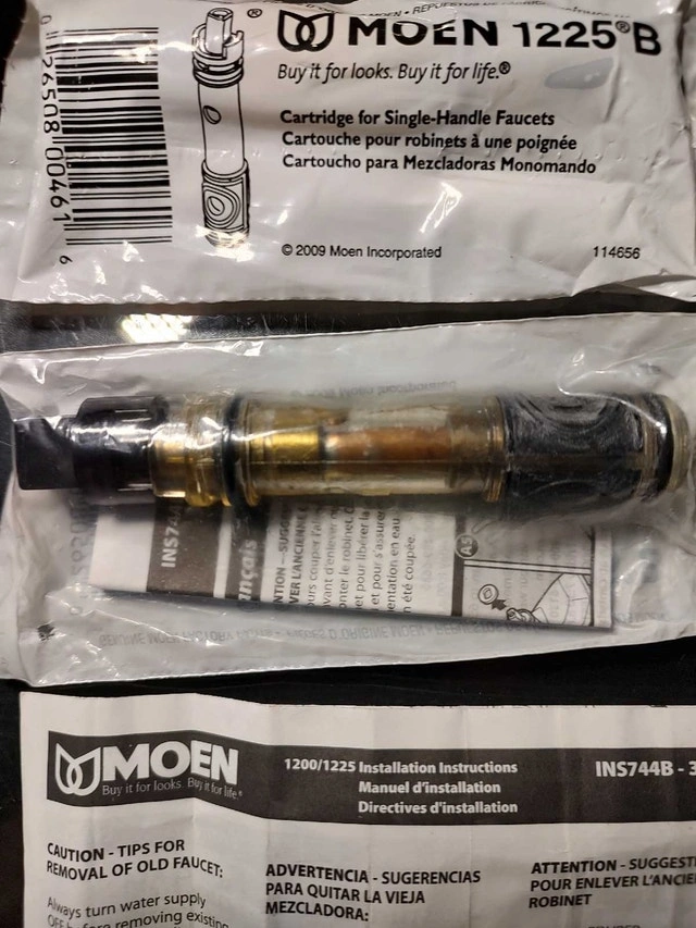 Brand new in sealed package MOEN 1225B cartridge for single handle faucets. One for $35, two for $60. Located downtown close to the College subway station. Store price is about $55.