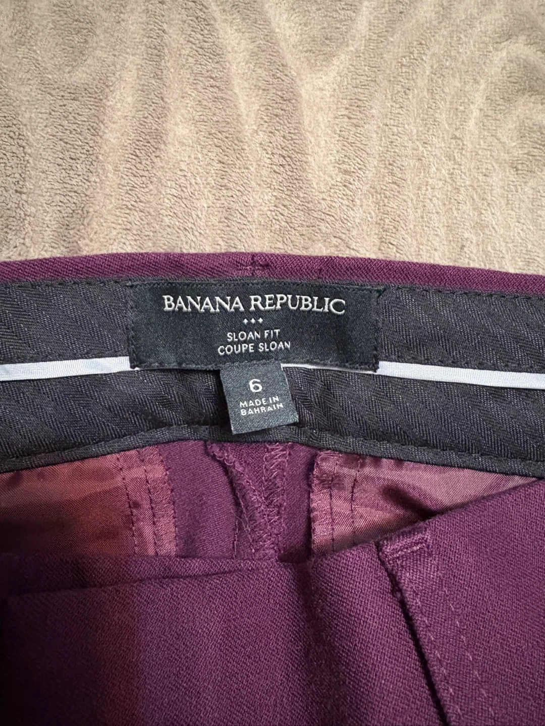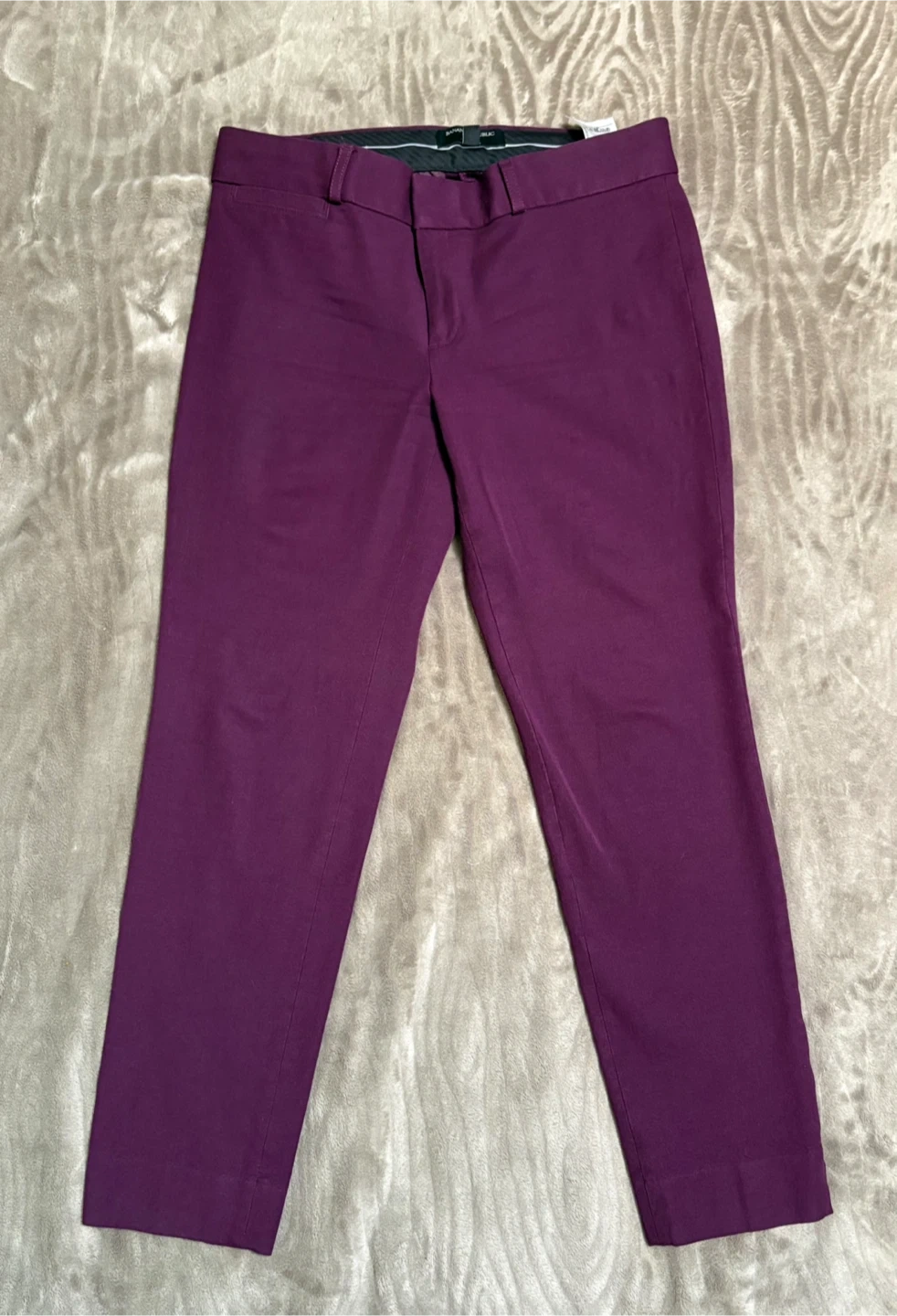 Banana Republic Sloan Fit Coupe Straight Leg pants in a lovely plum colour. They're a size 6 and made with a blend of 58% viscose, 39% cotton, and 3% elastane. These pants would be great for work or casual wear!