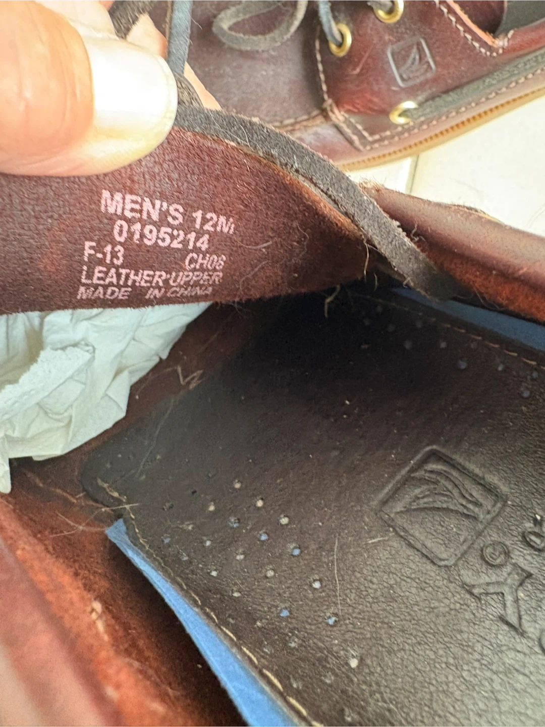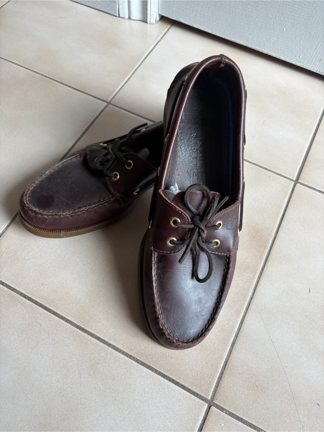 Sperry Top-Sider boat shoes in men's size 12M. They're a classic style and have a dark brown leather upper. They are great for casual wear, very comfortable and are in good condition!