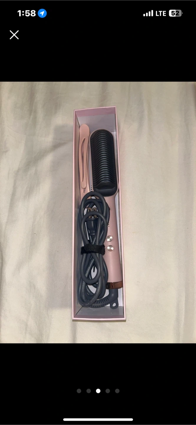 Selling a VKK hair straightener brush! It comes with the box and all the original components, including the clips and comb. This straightener is perfect for achieving sleek, straight hair in no time. Lightweight and portable, it's great for travel or everyday use