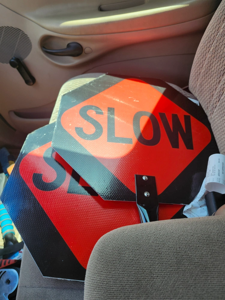 Pilot car sign. New whelen lights on top and new round lights as well front and back. Signs works as it should. Included is the Kenwood VHF/UHF 2 way radio with mic and brand new antenna. 2 construction ahead signs, 2 stop slow paddle and 1 yield to oncoming traffic. 1300 takes it all.