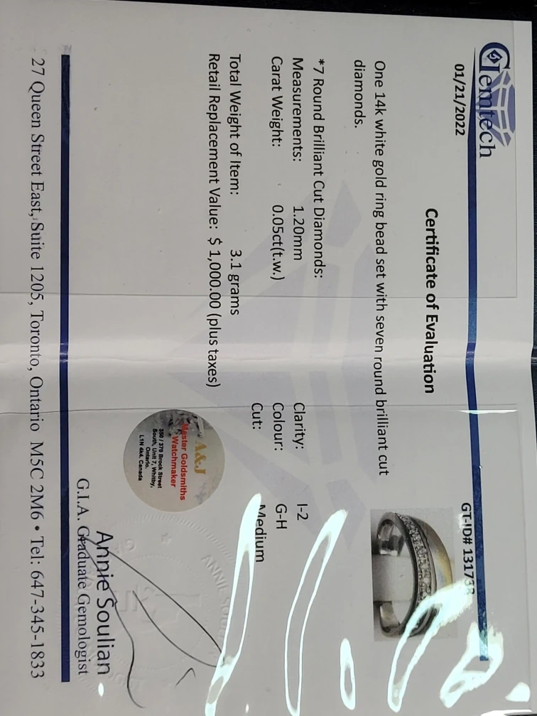 As you can see from the date of the Certificate, it was made on January 21, 2022. Today you have to add 25% more to the value, it would be something more than $1,250 but I still heard an offer.