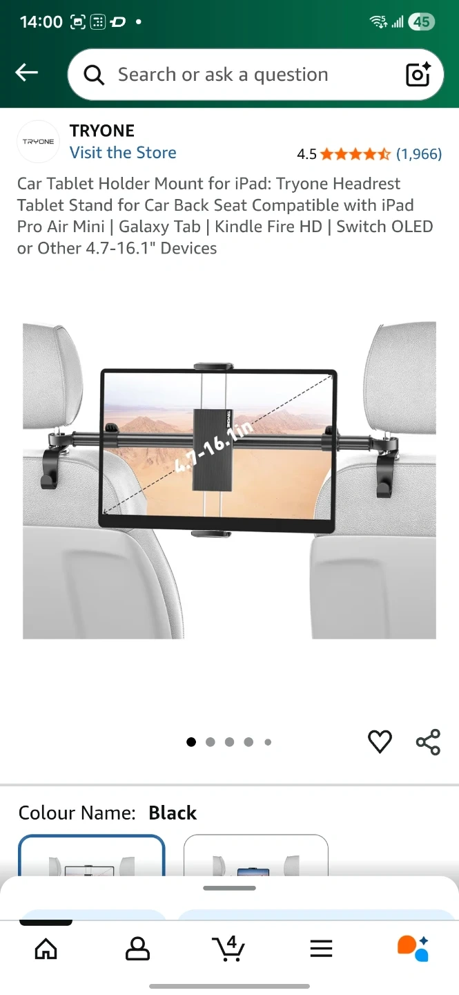Keep your kids entertained on long drives with this TRYONE car headrest tablet mount! It's compatible with devices from 4.7" to 16.1". The mount comes in its original box and includes all components. Originally bought for $44.99.