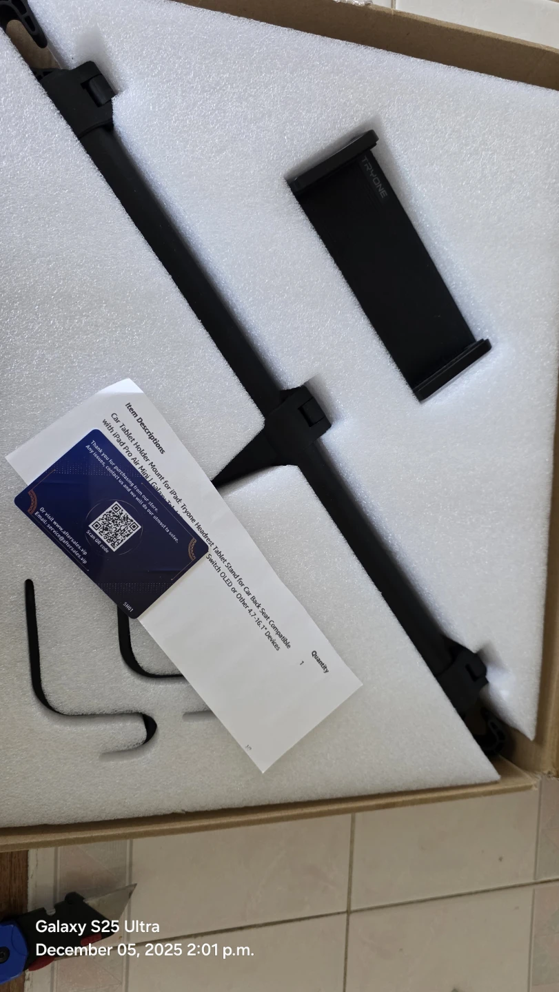 Keep your kids entertained on long drives with this TRYONE car headrest tablet mount! It's compatible with devices from 4.7" to 16.1". The mount comes in its original box and includes all components. Originally bought for $44.99.