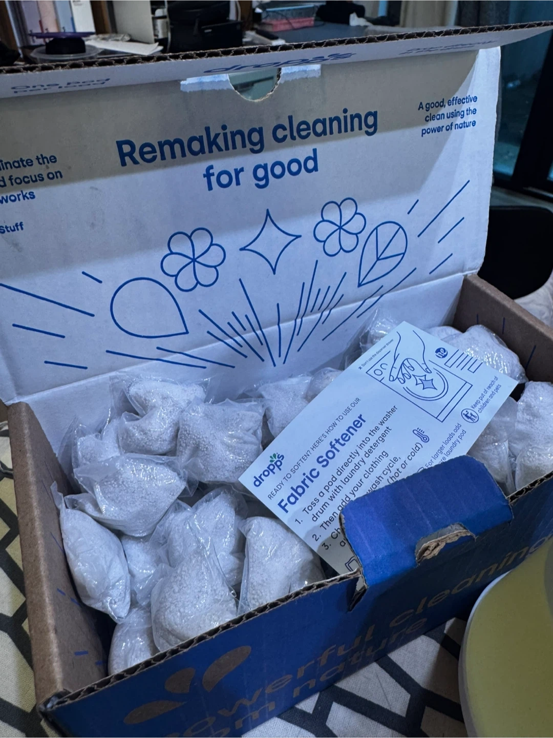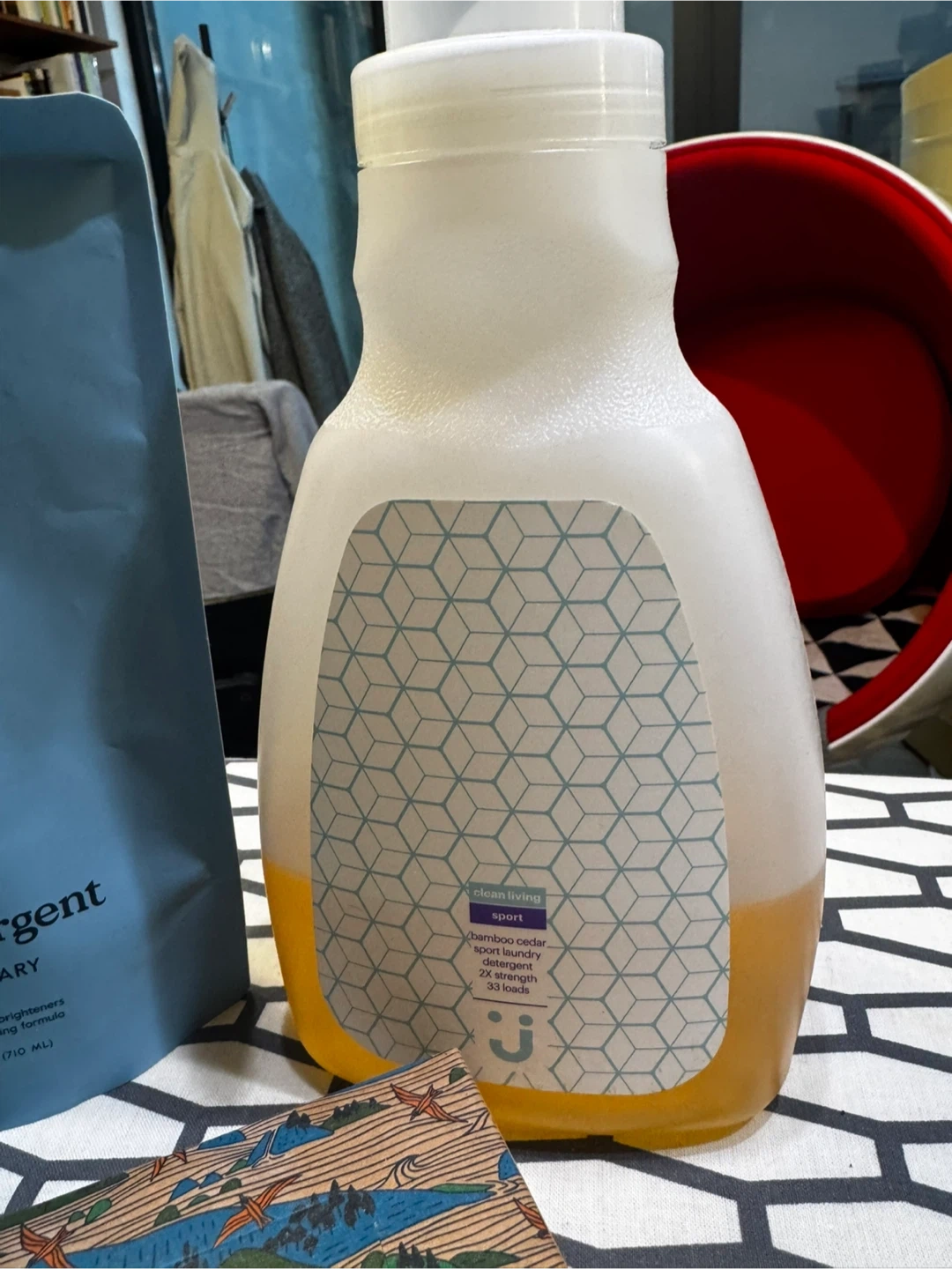Giving away unneeded laundry supplies including detergents, a dispenser and fabric softeners:
