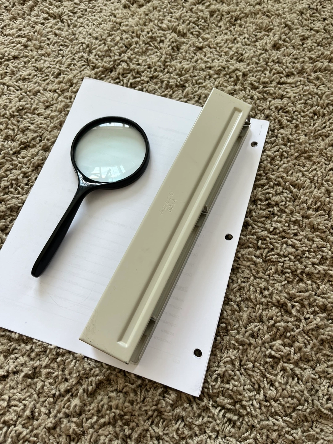 Sketchbook, Magnifying Glass, and Hole Punch