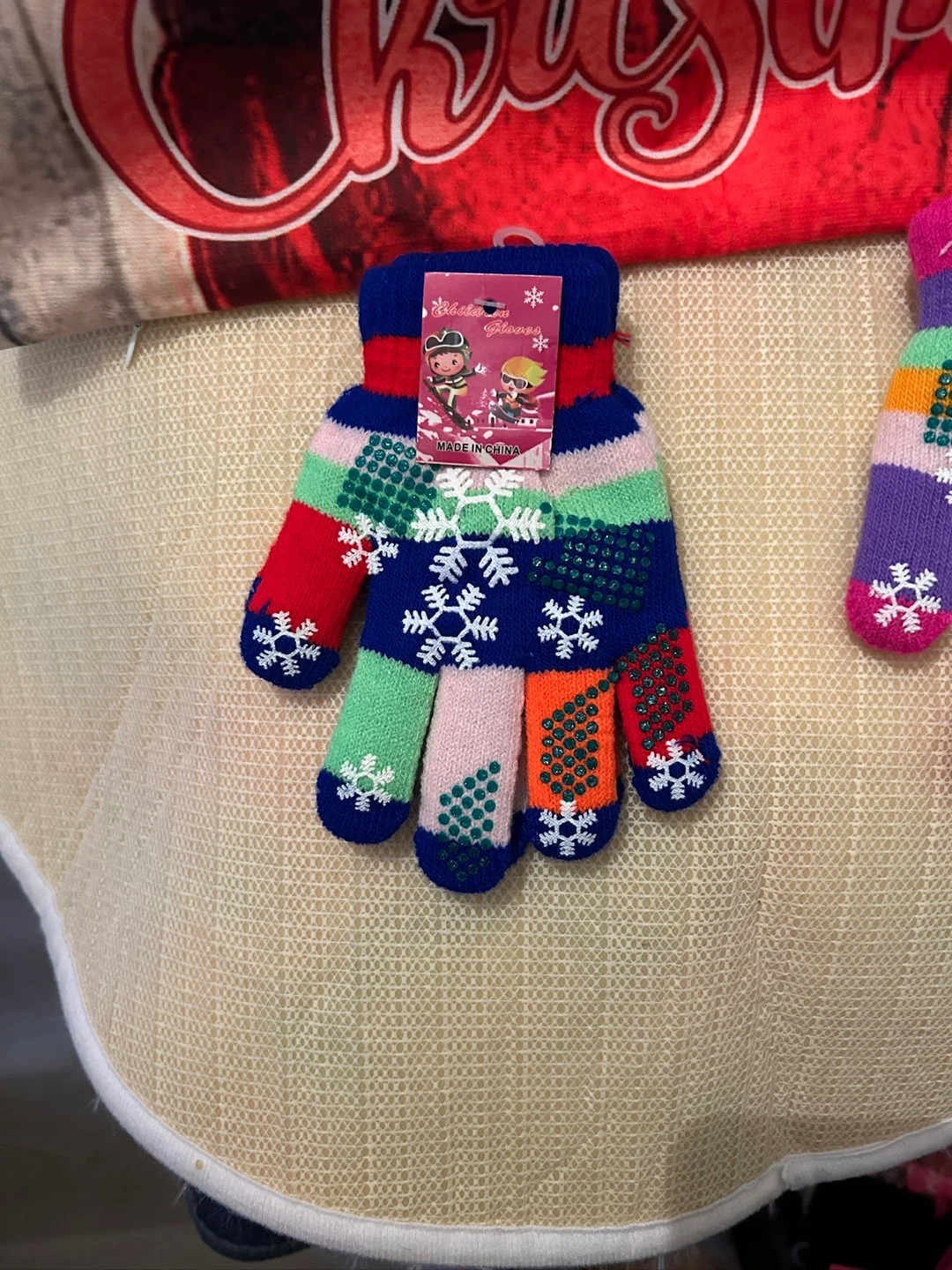 Cute children's winter gloves with a colorful design! Perfect for keeping little hands warm during the cold weather. They feature a snowflake pattern and are made in China.