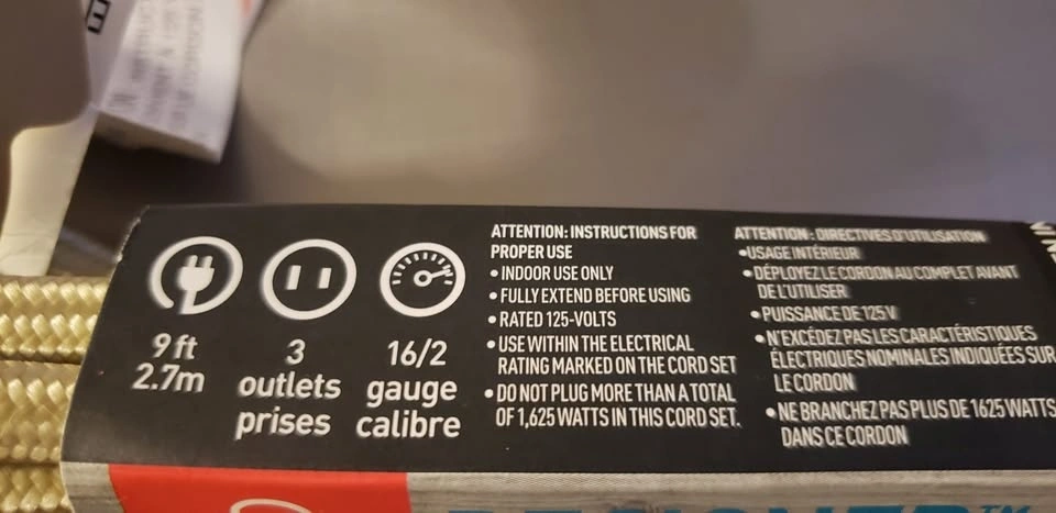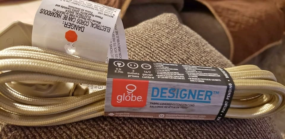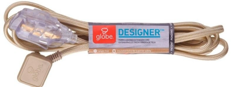 Globe Designer Fabric Covered Extension Cord 9Ft