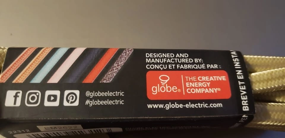 Globe Designer Fabric Covered Extension Cord 9Ft