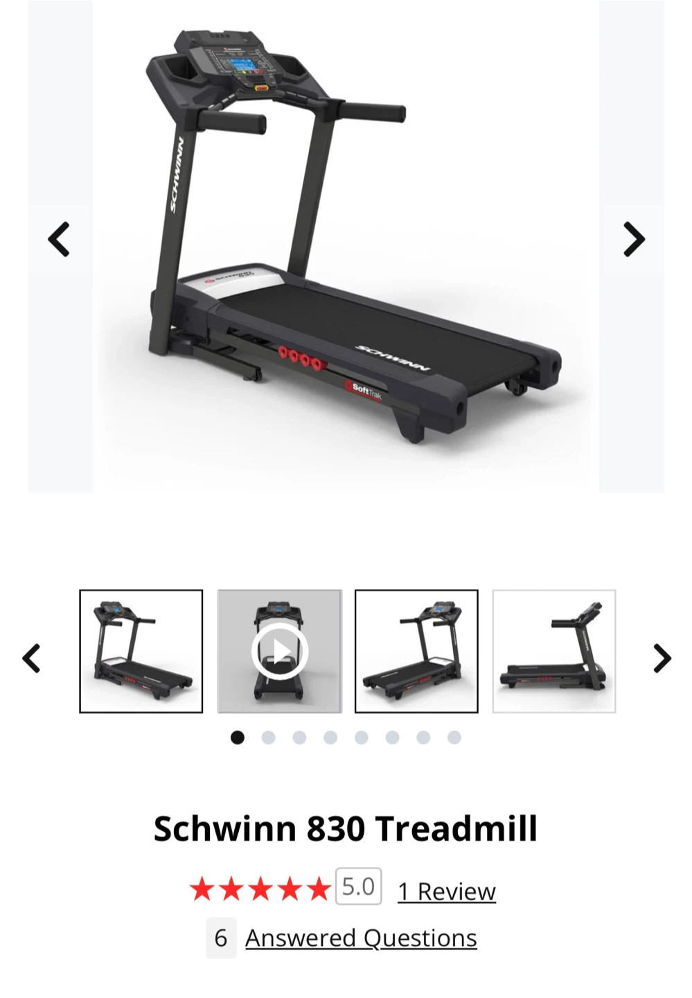Selling a Schwinn 830 treadmill in great shape! It features a SoftDrop deck folding system for easy storage and a 4-cell Softrak deck cushioning system to reduce joint stress.