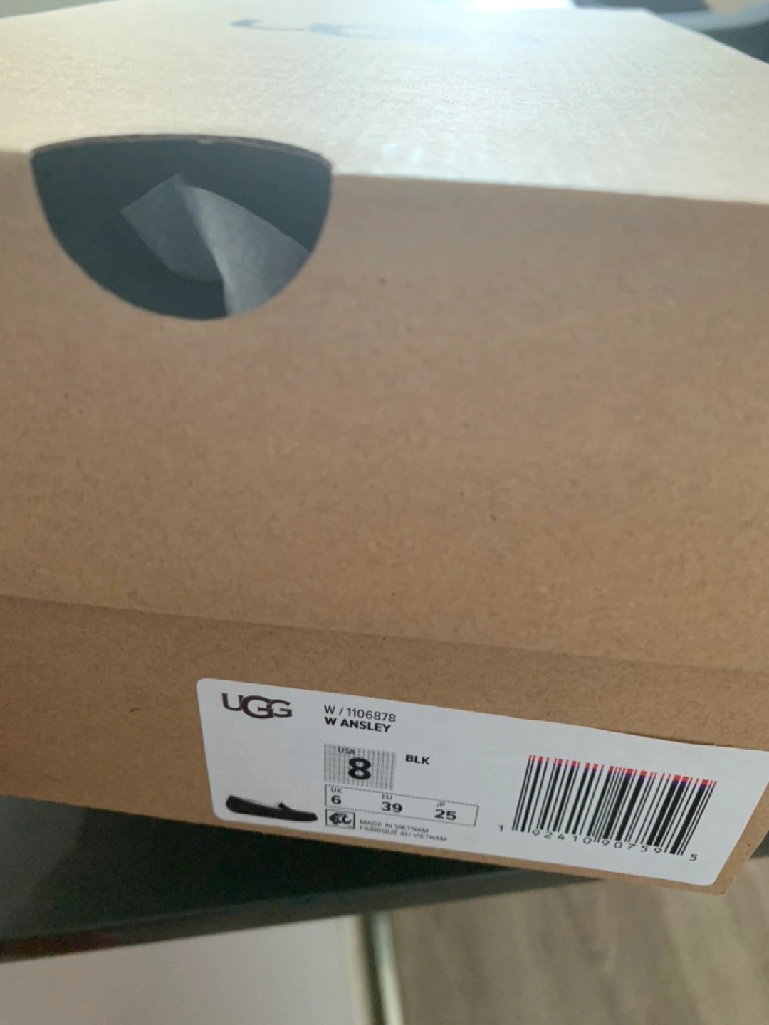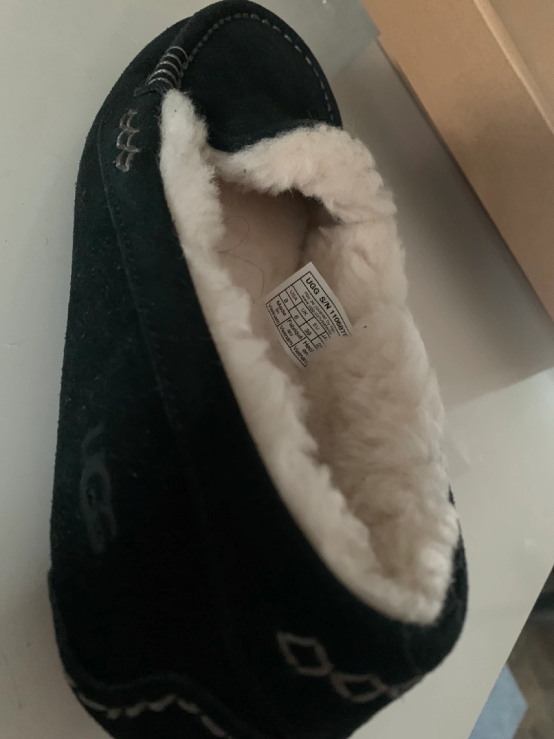 NEW UGG luxurious sheepskin Ansley moccasin shoes in black suede, women's size 8. They come with the original box! Never worn.