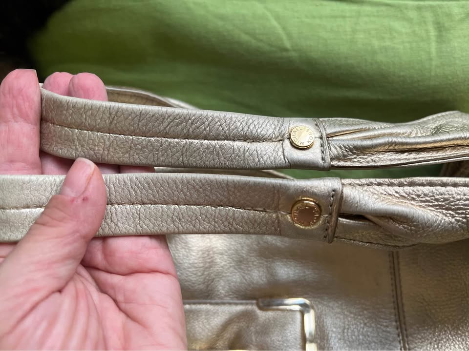 Used, yet in great condition. Slight wear on the underside of the handles. Lots of pockets inside and out. Interior has three section middle enclosed with a zipper. Leather is soft, and the bag itself is not heavy. Pickup in Courtice.