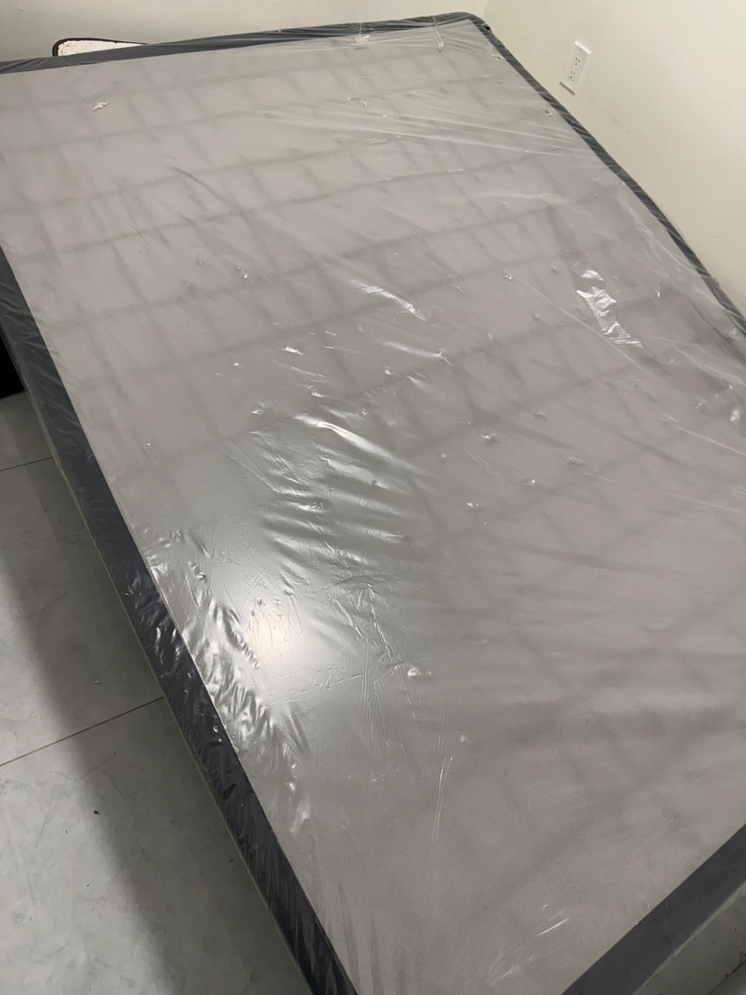 Queen size mattress and box spring set, ready for a new home. The mattress is covered in protective plastic. It's great for a student or spare room. Both pieces are included!