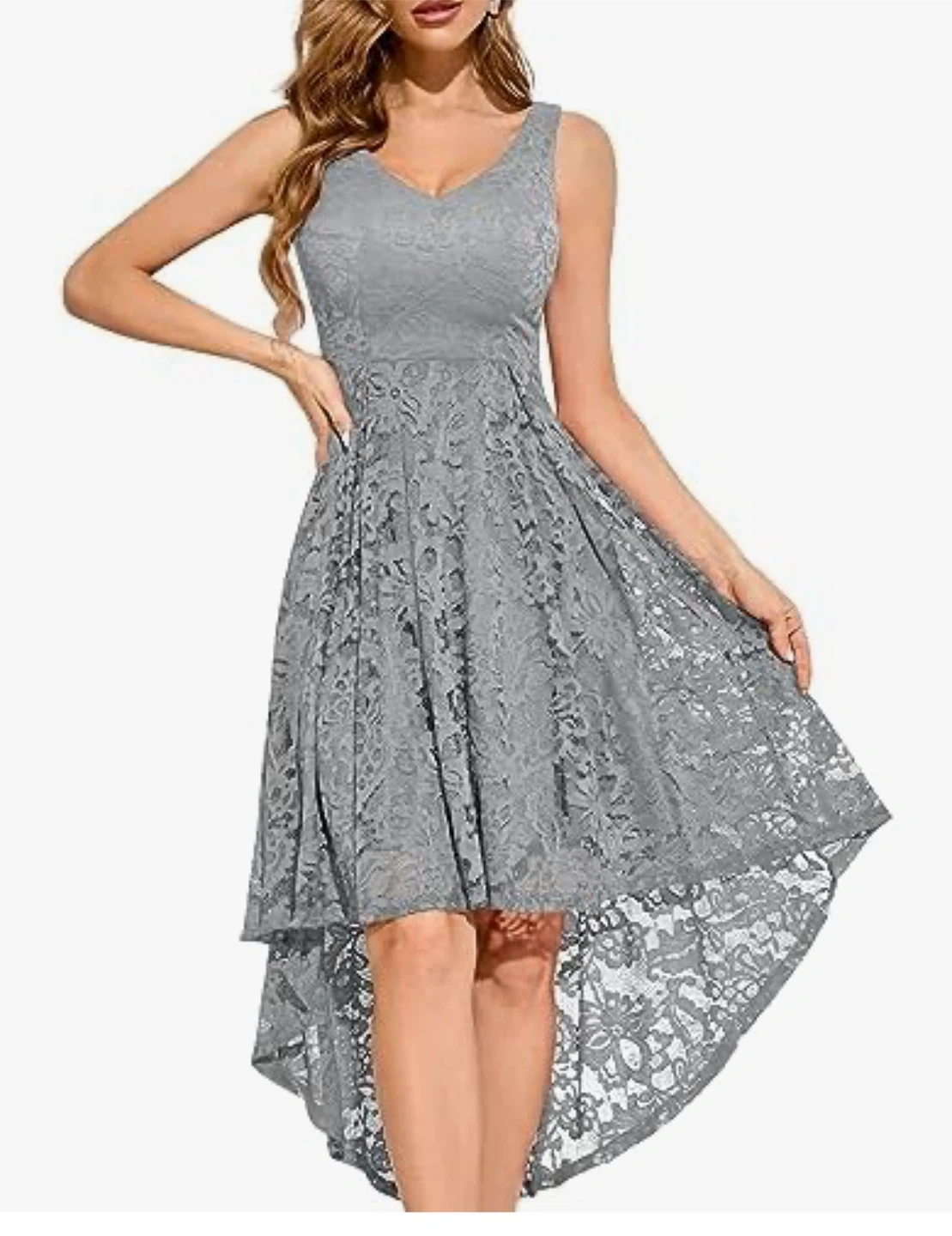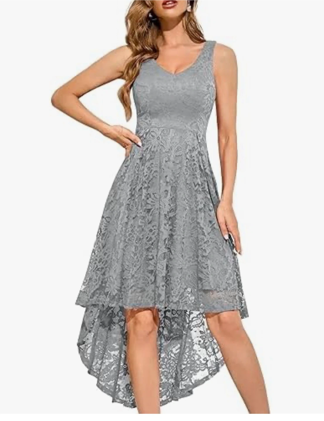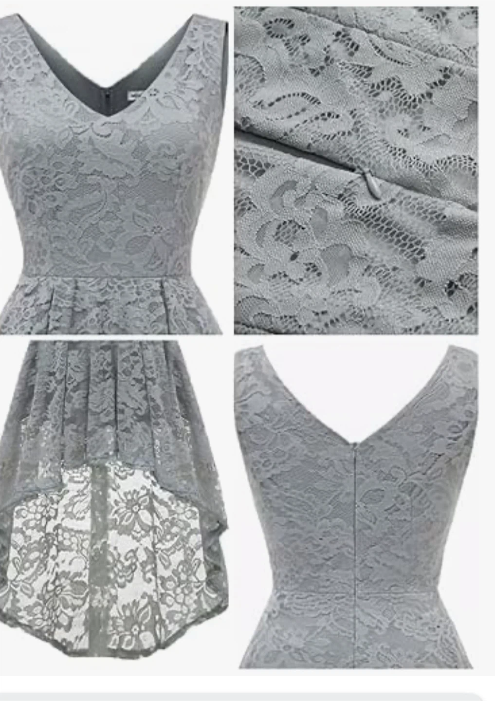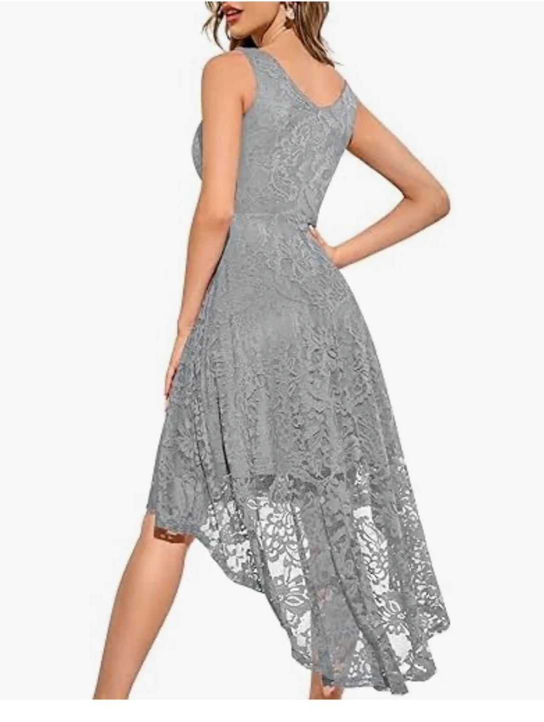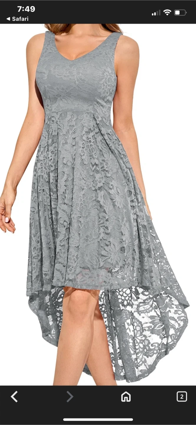 Selling a pretty Grey Lace Asymmetrical dress with a hi-low hemline! It's in great condition and would be perfect for a special occasion Like Grad dress or a night out.Brand new newer worn .