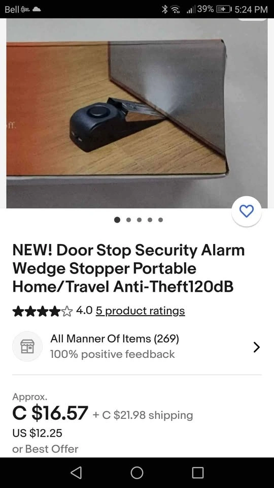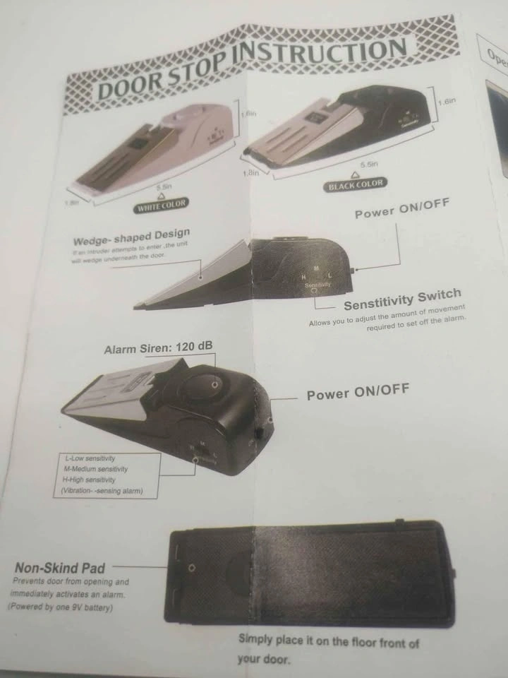 Pick up is Browns Line and Lakeshore Blvd West after 5:30 pm, near the Tim Hortons at 38th and Lakeshore Blvd West. With everything going on, safety is a huge concern! I have these on all the doors around my house. If someone tries to enter, the alarm will go off and wake you if you're sleeping. Unfortunately, we have to protect what's ours these days. This alarm wedge stopper is portable for home or travel, with a 120dB alarm. The wedge shape design fits any hinged door. It has adjustable high sensitivity and requires no installation, making it easy for travelers to carry. It can also be used as a regular doorstop when the power switch is turned off. Special design for use at home, office, and hotel rooms. Powered by a 9V battery.