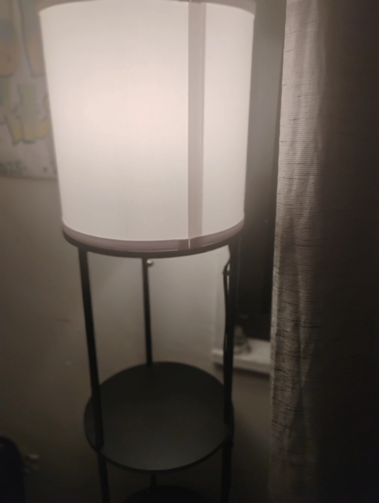 Selling a floor lamp that also has shelves! It's in great condition and would be perfect for a living room or bedroom. The shelves are great for displaying plants or storing books