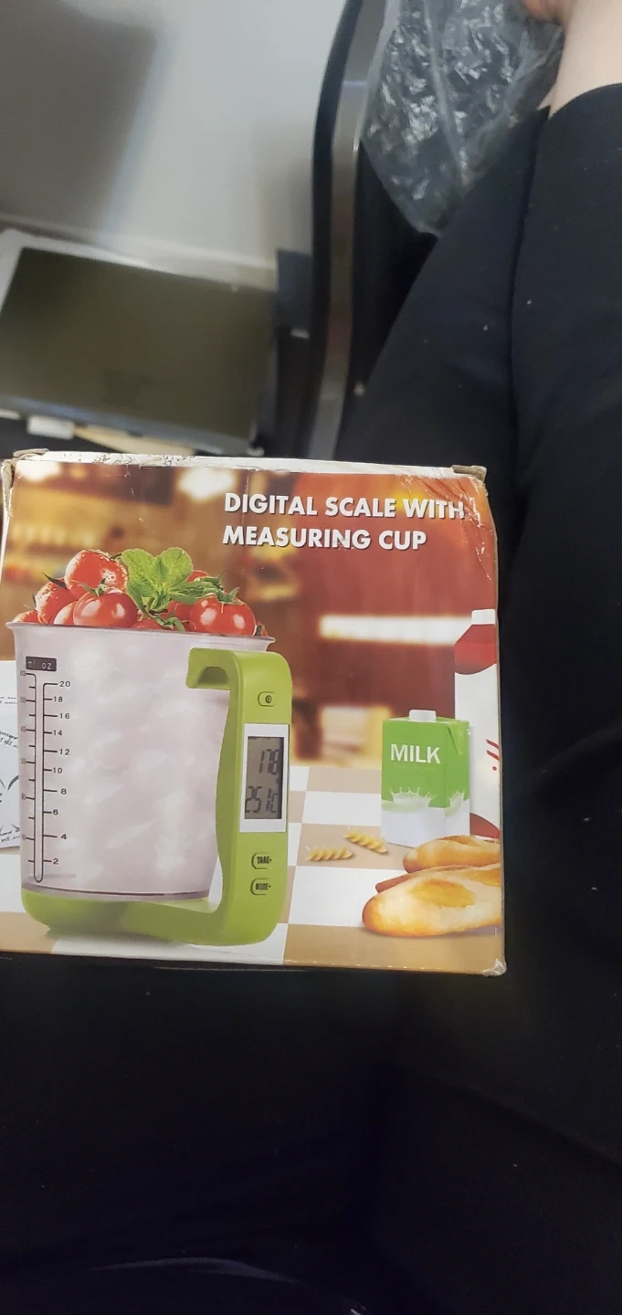 Digital scale with measuring cup, perfect for precise measurements in the kitchen! It's easy to read and can measure in g/ml/oz/cup/lbs. Great for flour, sugar, milk, or oil I have 2 of them brand new in the box.
