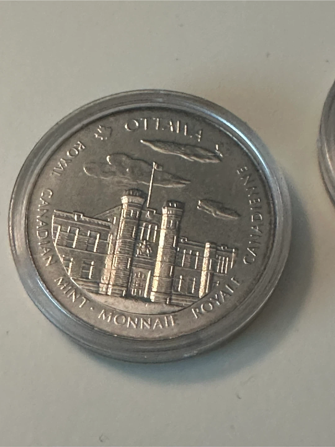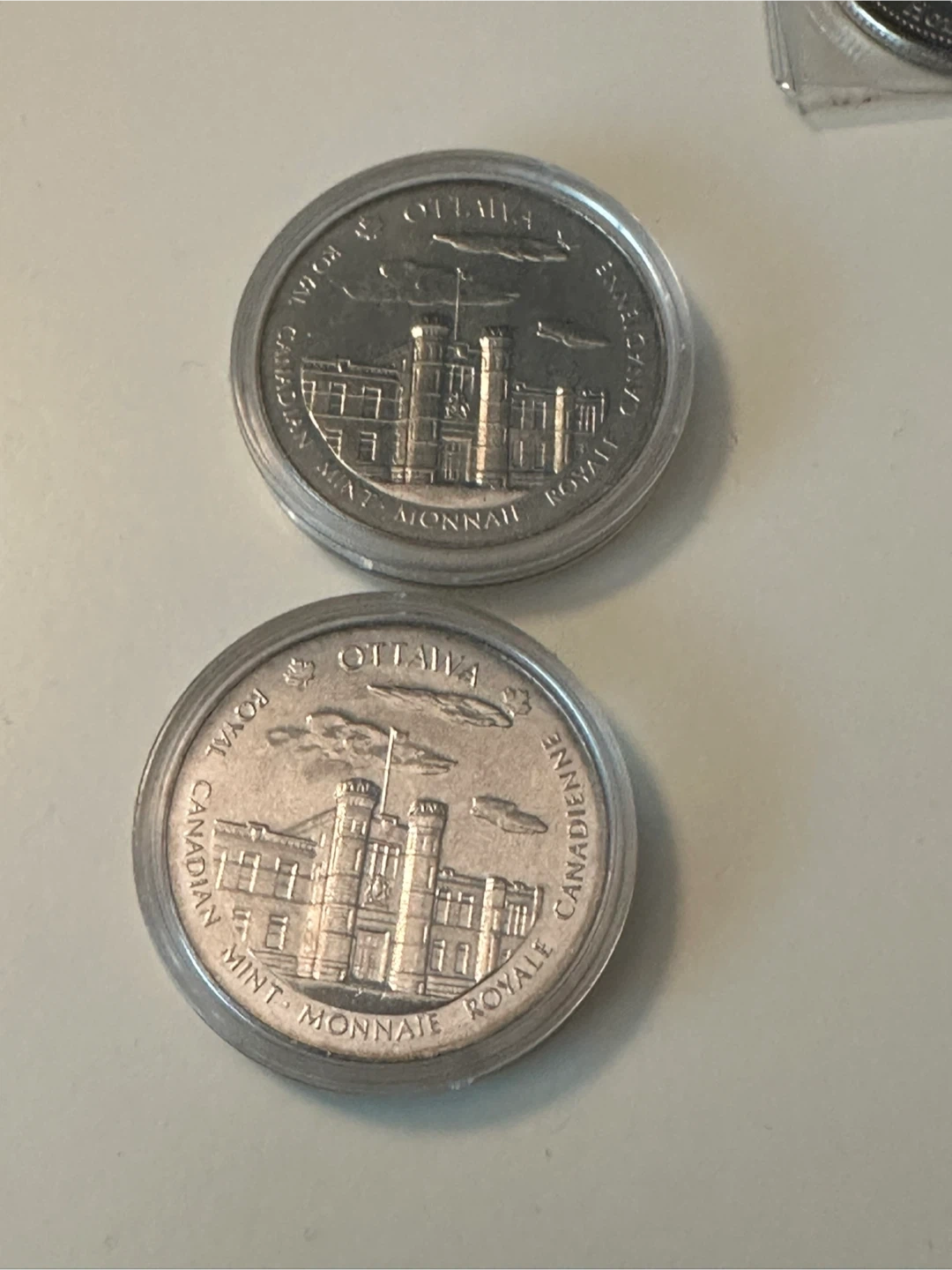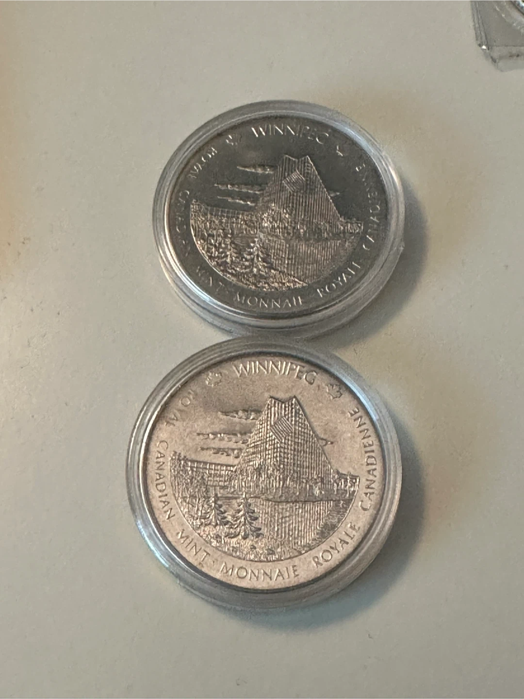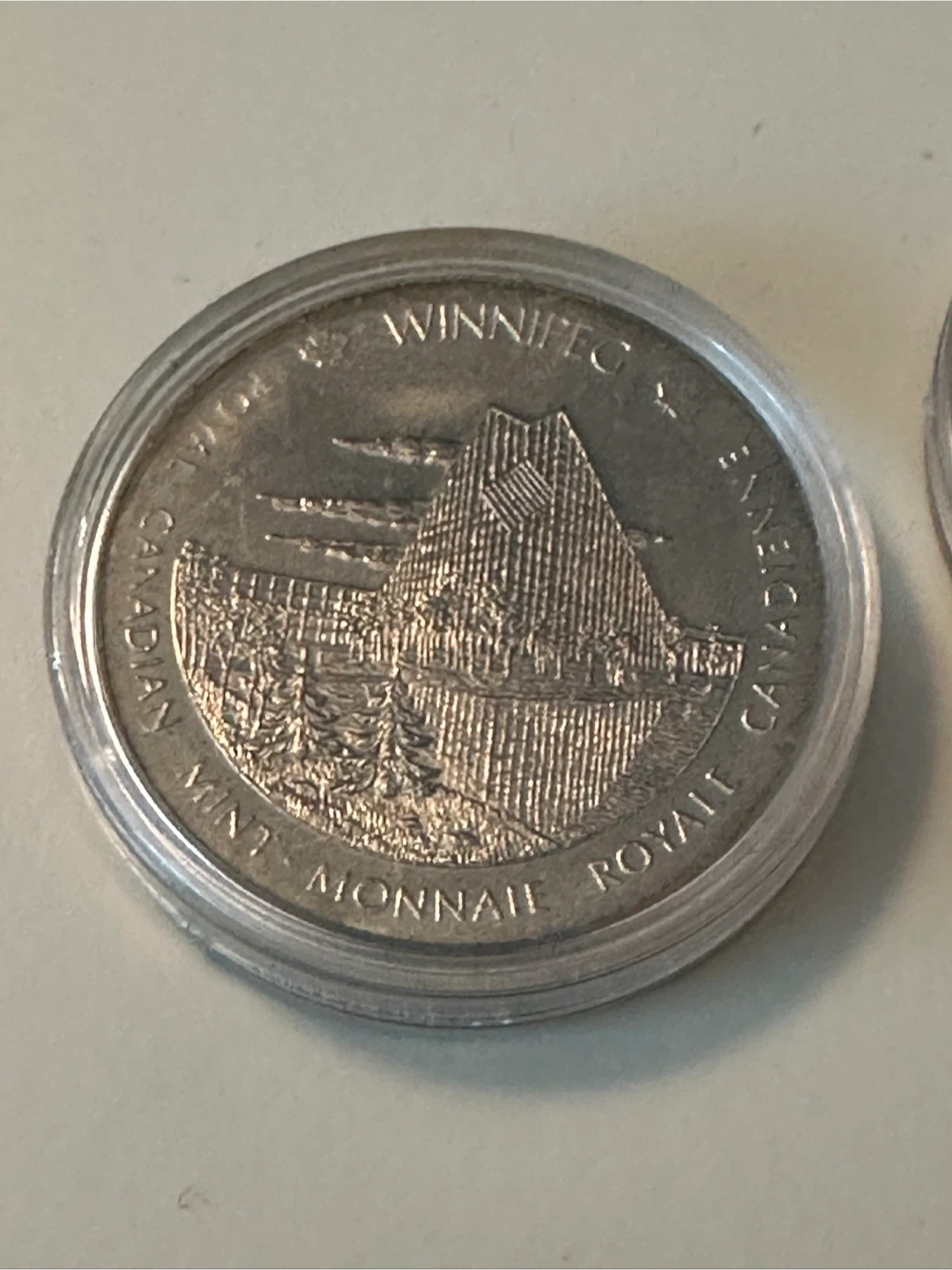 One side features the Winnipeg mint building and the other side features the Ottawa building.