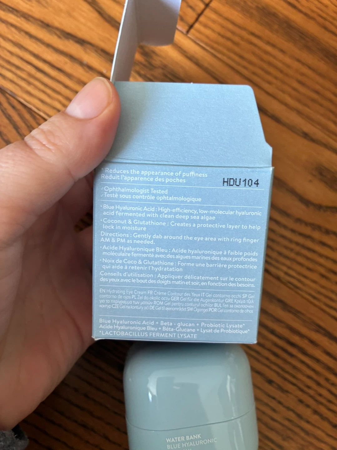 This LANEIGE eye cream is formulated with Blue Hyaluronic Acid and ingredients from deep sea algae. It's designed to brighten and reduce puffiness under the eyes. 25 ml (0.8 fl. oz.).