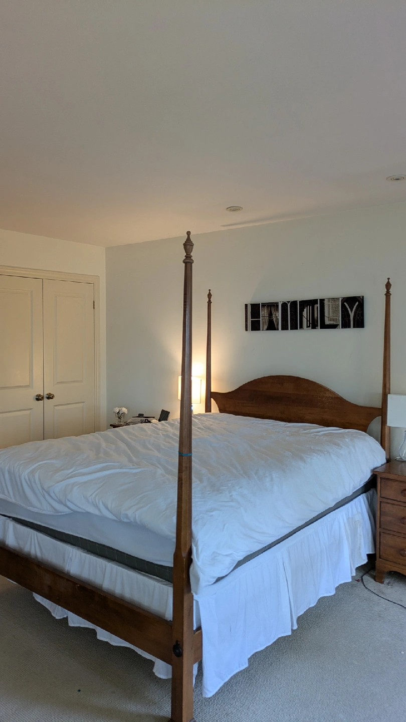Here's a lovely wooden dresser (with Mirror), 2 bedside tables with multiple drawers. includes a bed frame (Queen size) with headboard, box spring and mattress (Queen size). It's perfect for adding some classic charm to your bedroom or any living space. The drawers are well-made with dovetail joints, ensuring durability and smooth operation. A great piece for storage and style!