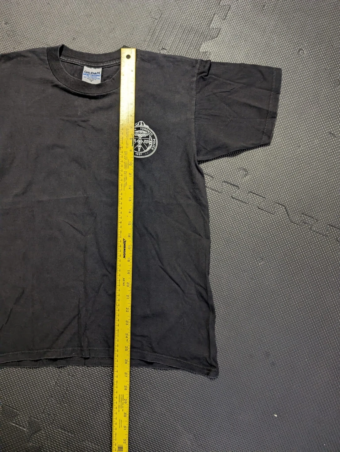 Selling a Gildan Heavyweight T-shirt in black! It's made of 100% cotton and is a size medium. The shirt features a Metropolitan Toronto Police logo. It's in great condition and ready for a new owner!