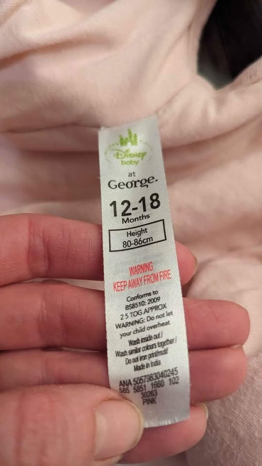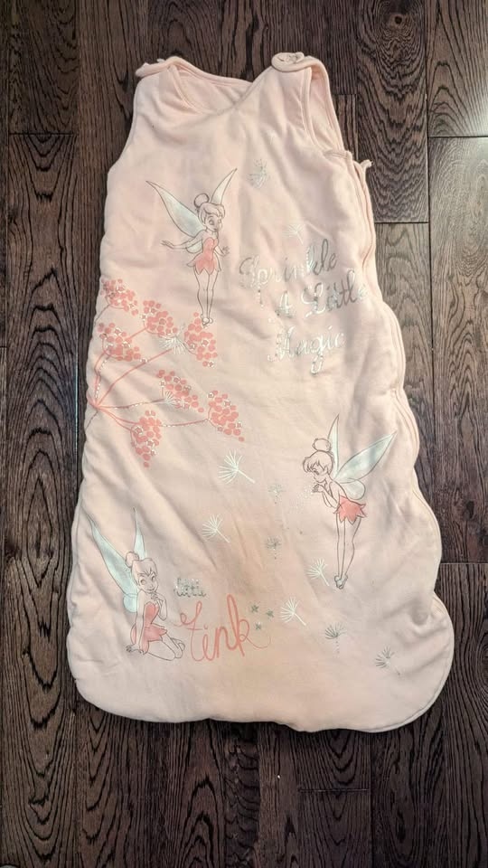 Two sleep sacks, Gro and George brands, 2.5 TOG. White and pink is 0-6 months. Pink Tinkerbell is 12-18 months. Selling $10 each.