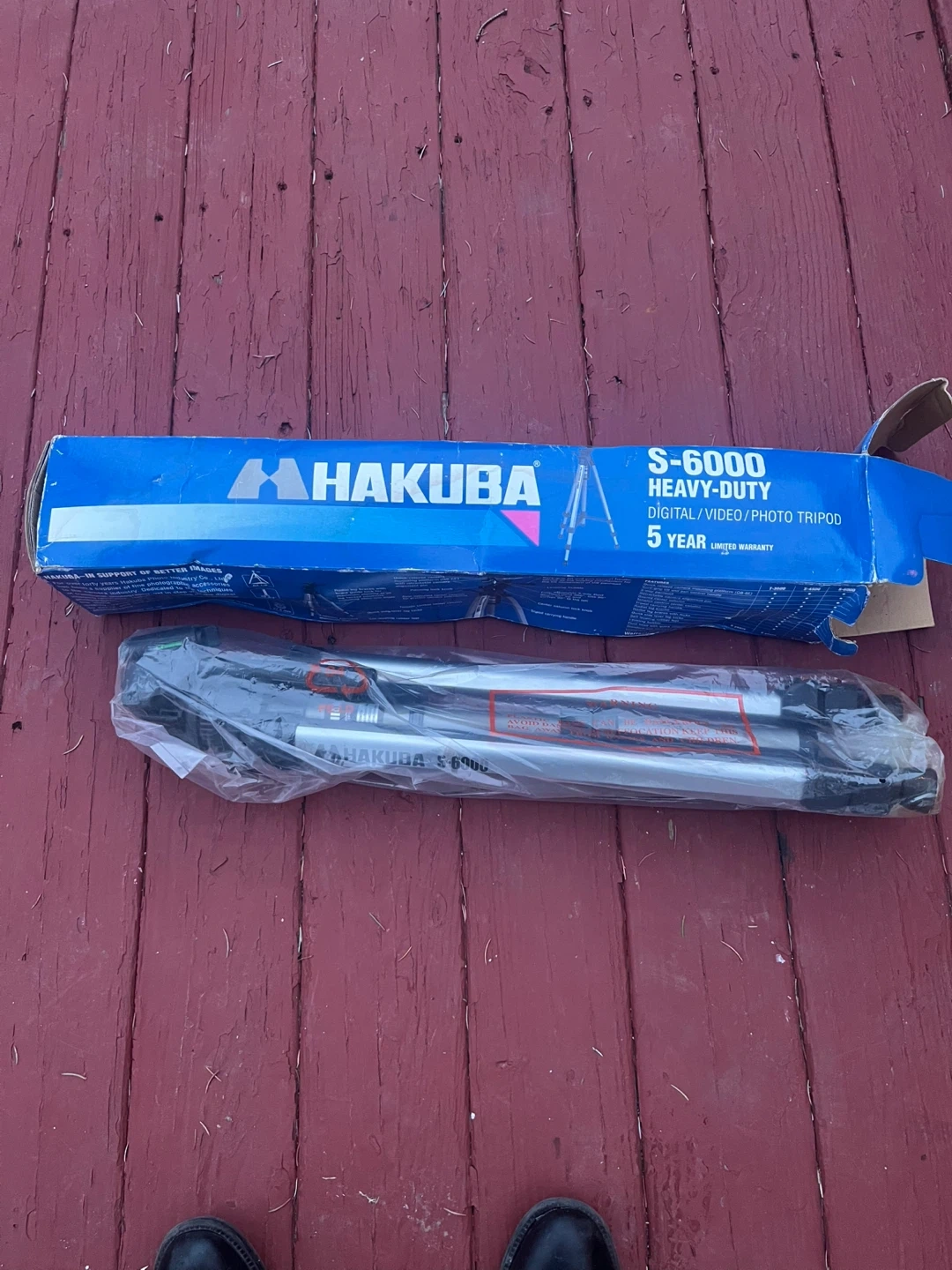 This is a Hakuba S-6000 heavy-duty tripod. It's designed for digital, video, and photo use. Includes original box and 5-year limited warranty.
