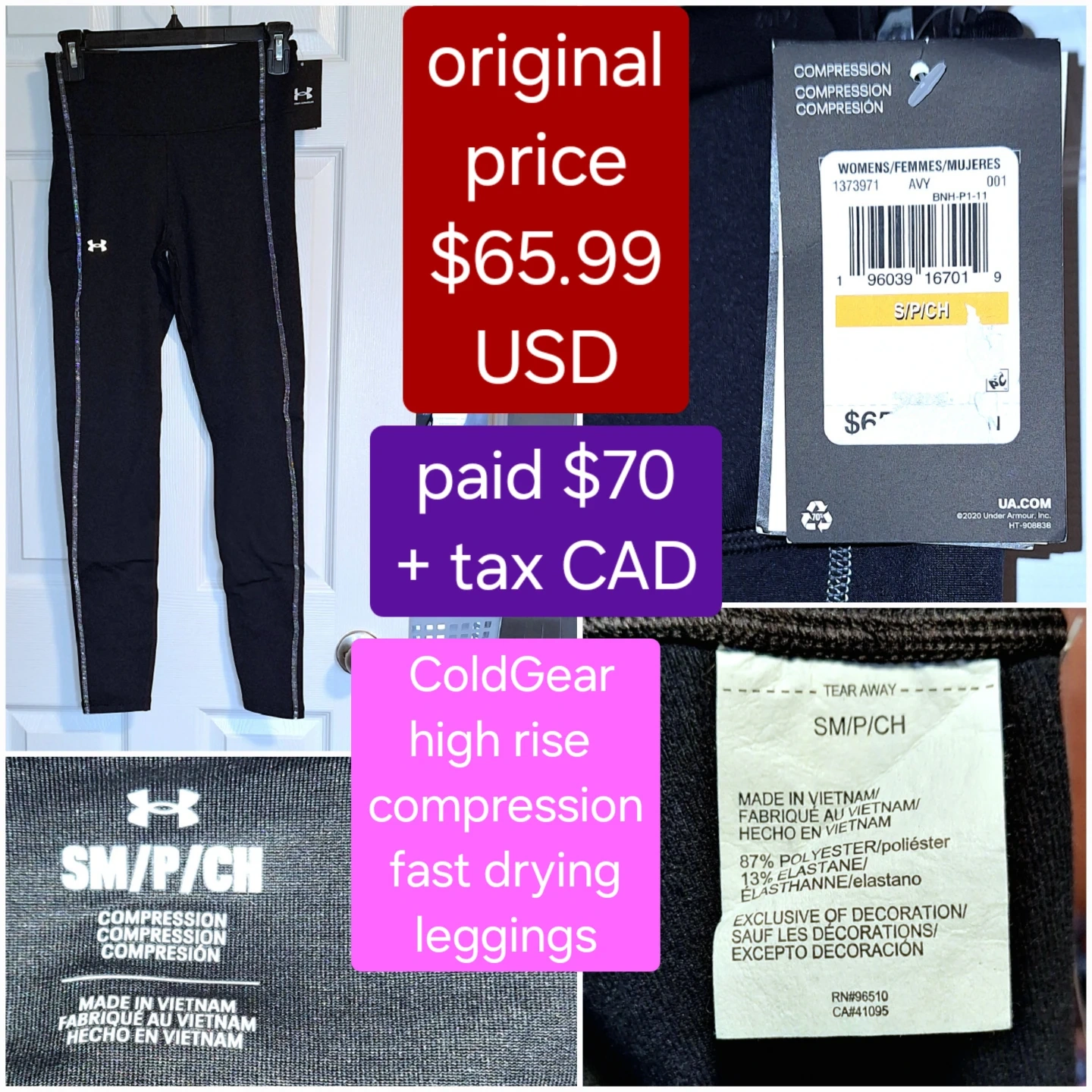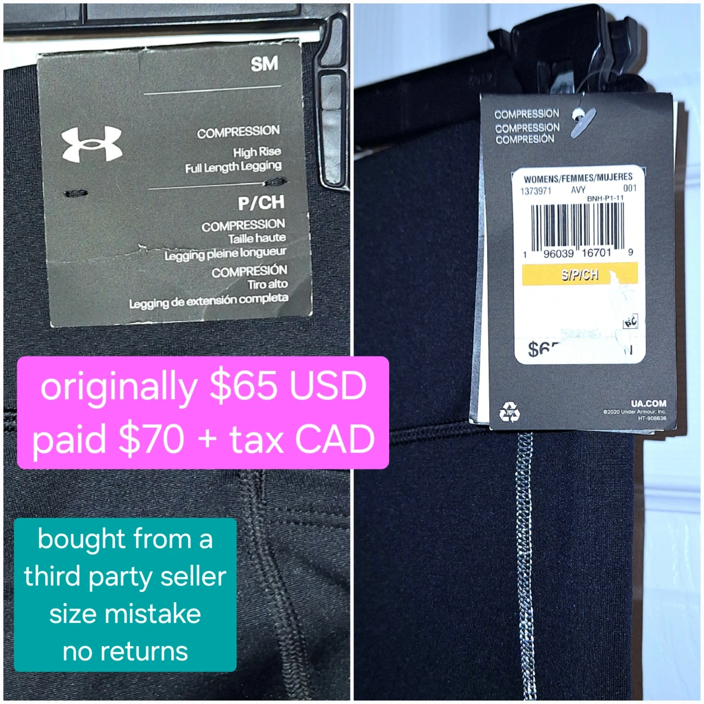 originally purchased for $70 + tax (now selling online for $90+; tag says $65 USD) - just bought the wrong size and it's non-returnable since I bought from a third-party seller